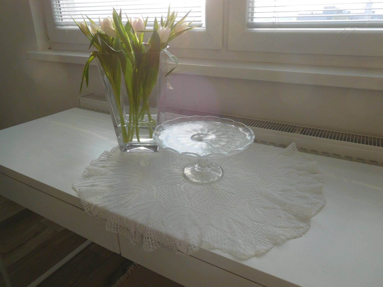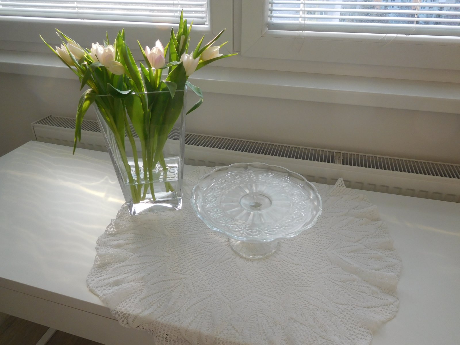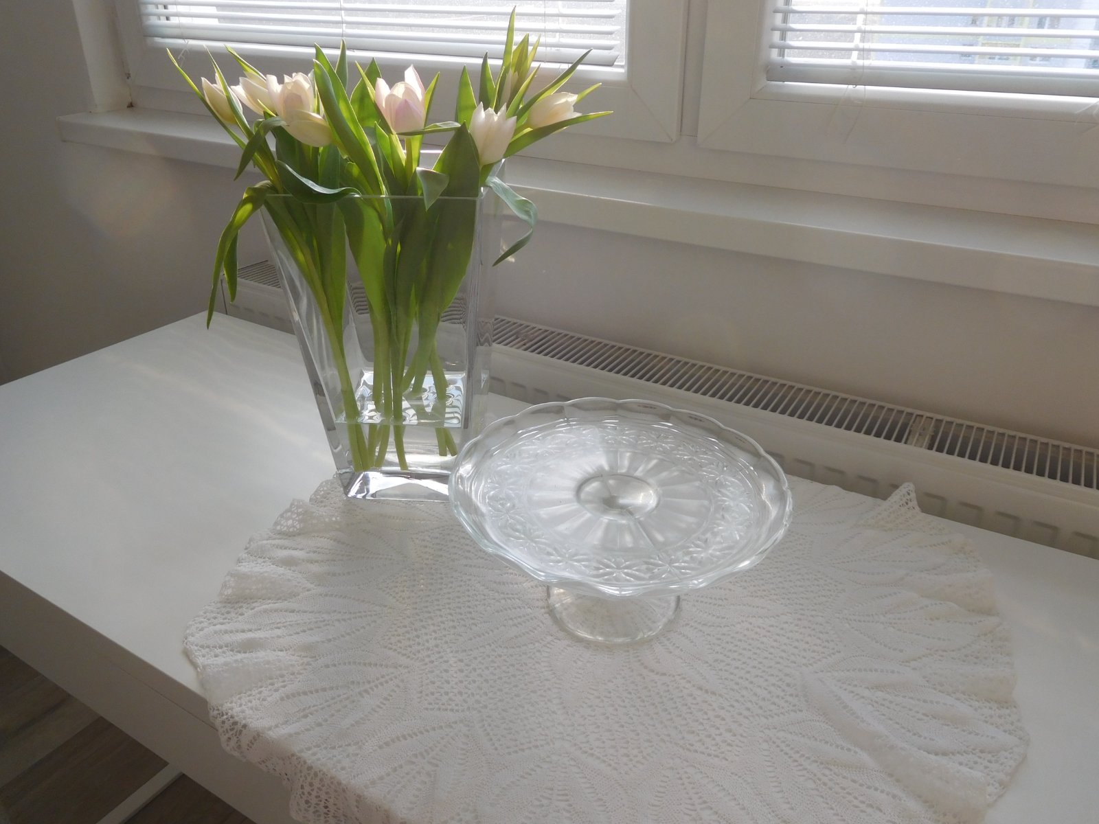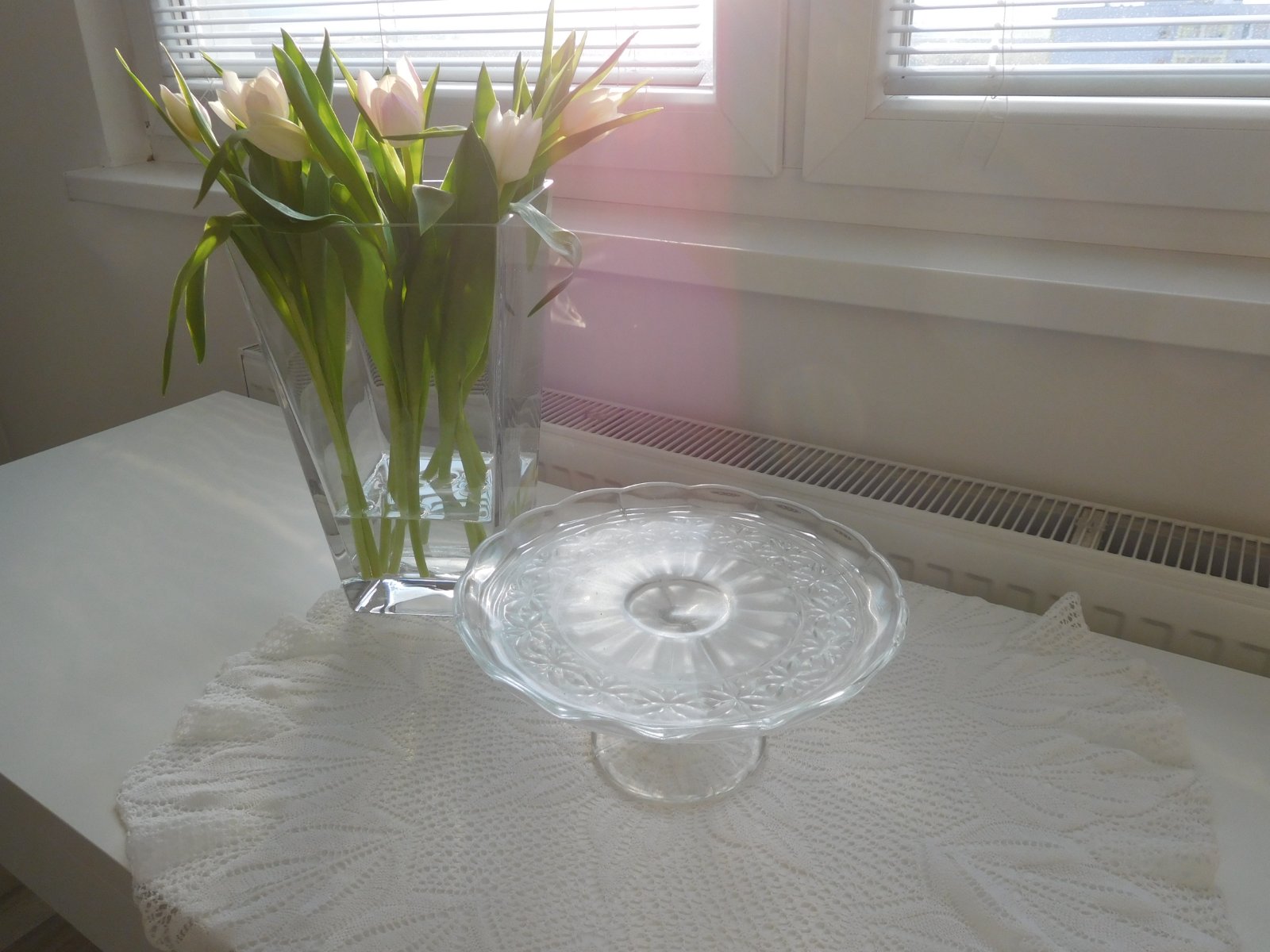 Podnos tortový livované sklo na nožičke,
