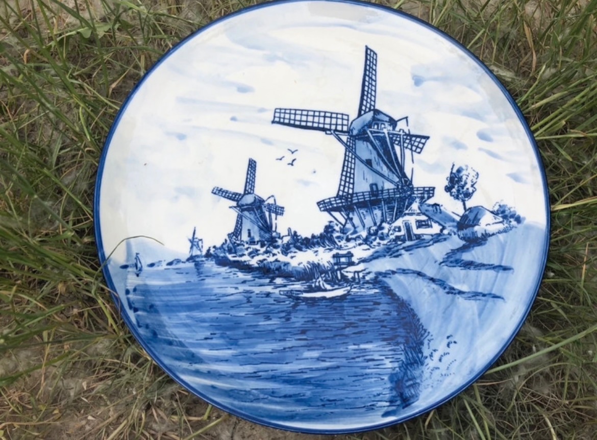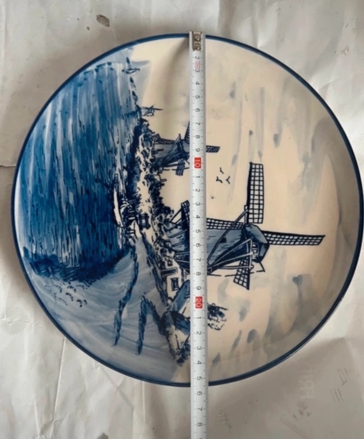Holandsky vacsi malovany vintage zavesny tanier s mlynmi 25,5 cm znaceny mlyn holand porcela
