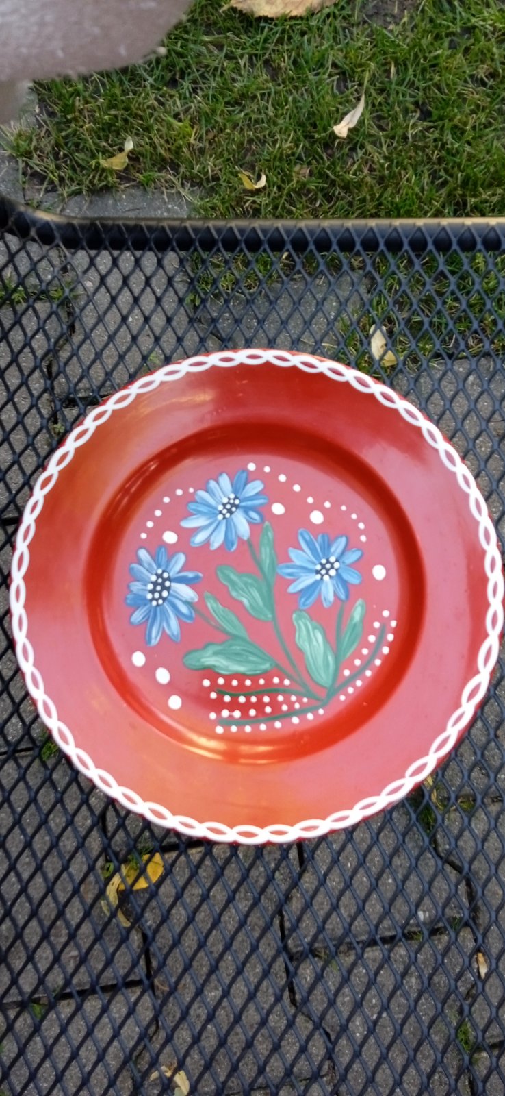 DITMAR URBACH maľovaný tanier červený kvety stav ako na foto po babke 1930-60 top stav priemer 25cm - 20eur