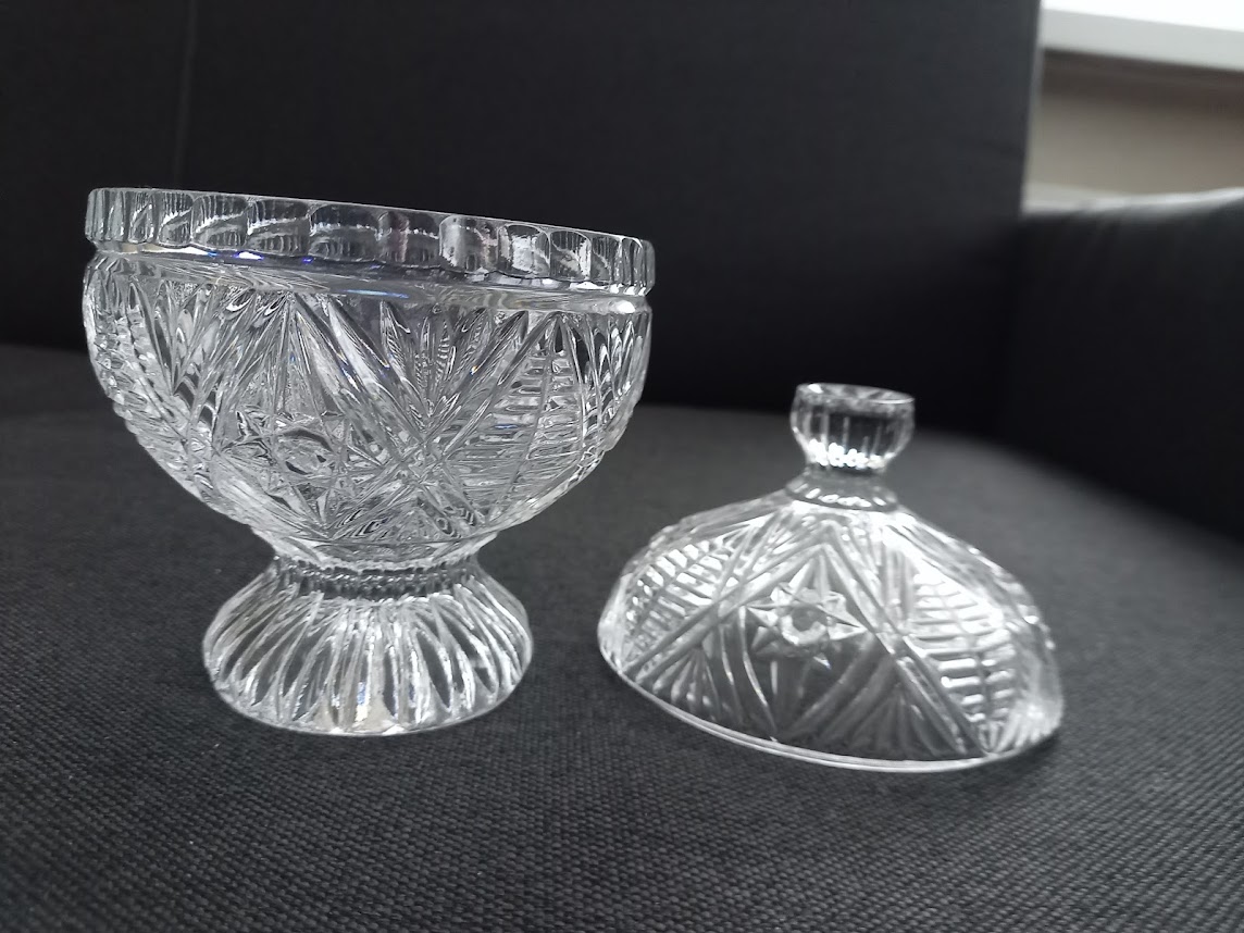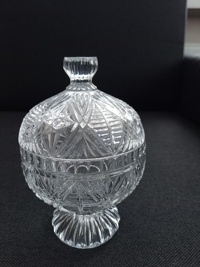 Kryštál Bohemia - dóza s vrchnákom - vitrínová. Výška 16 cm. Cena 14€+poštovné.