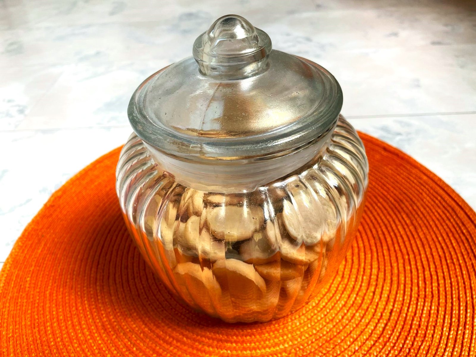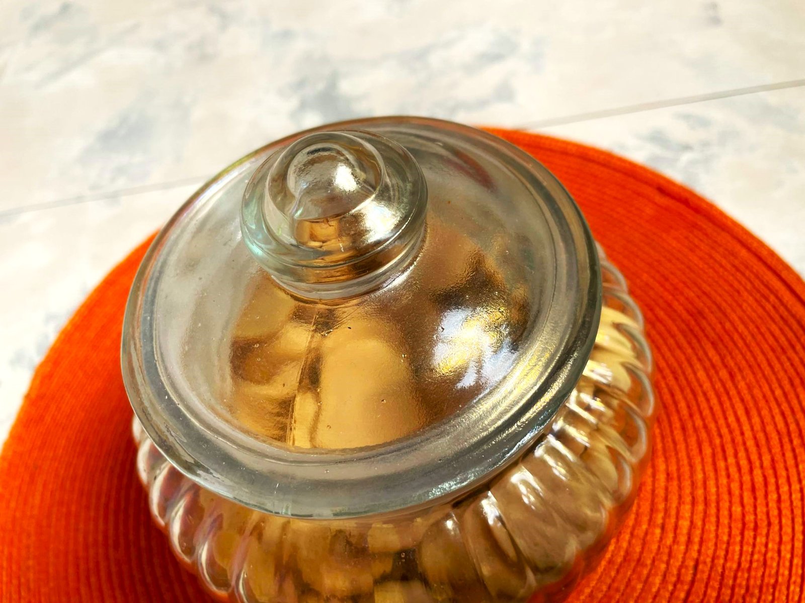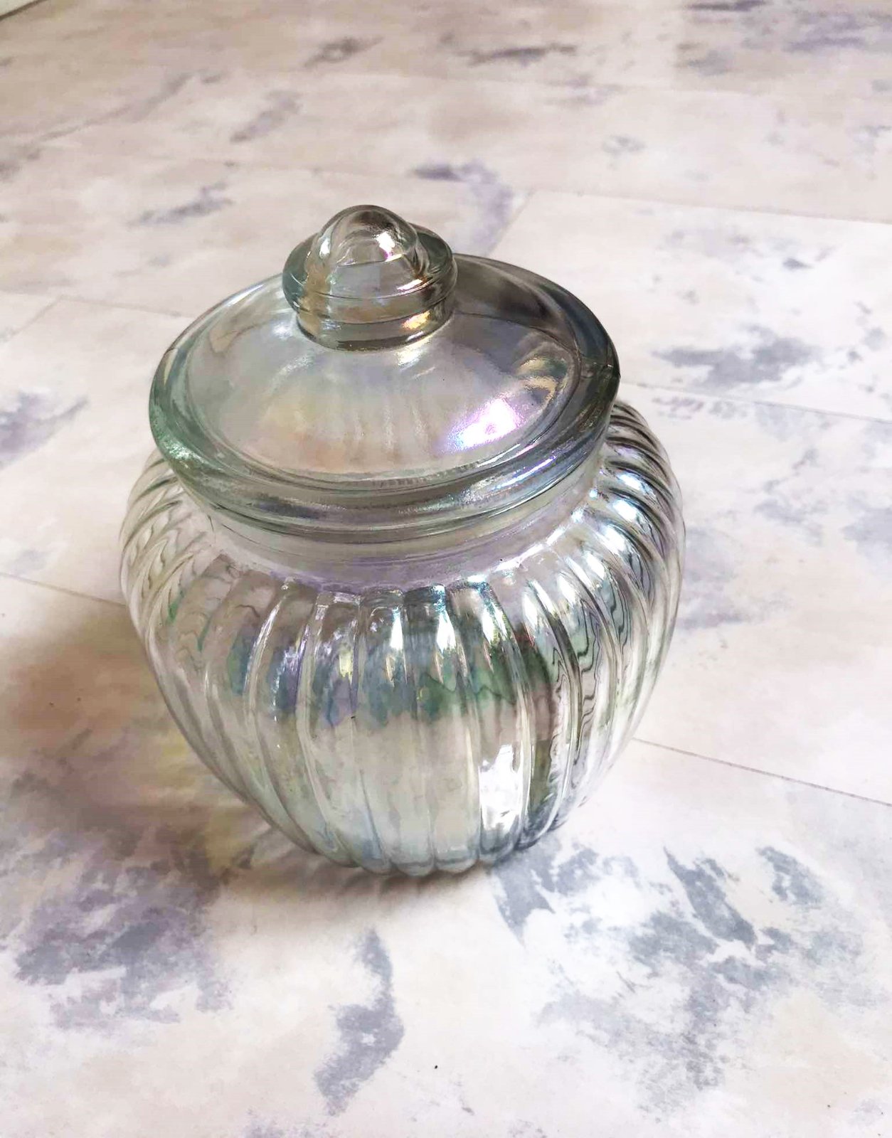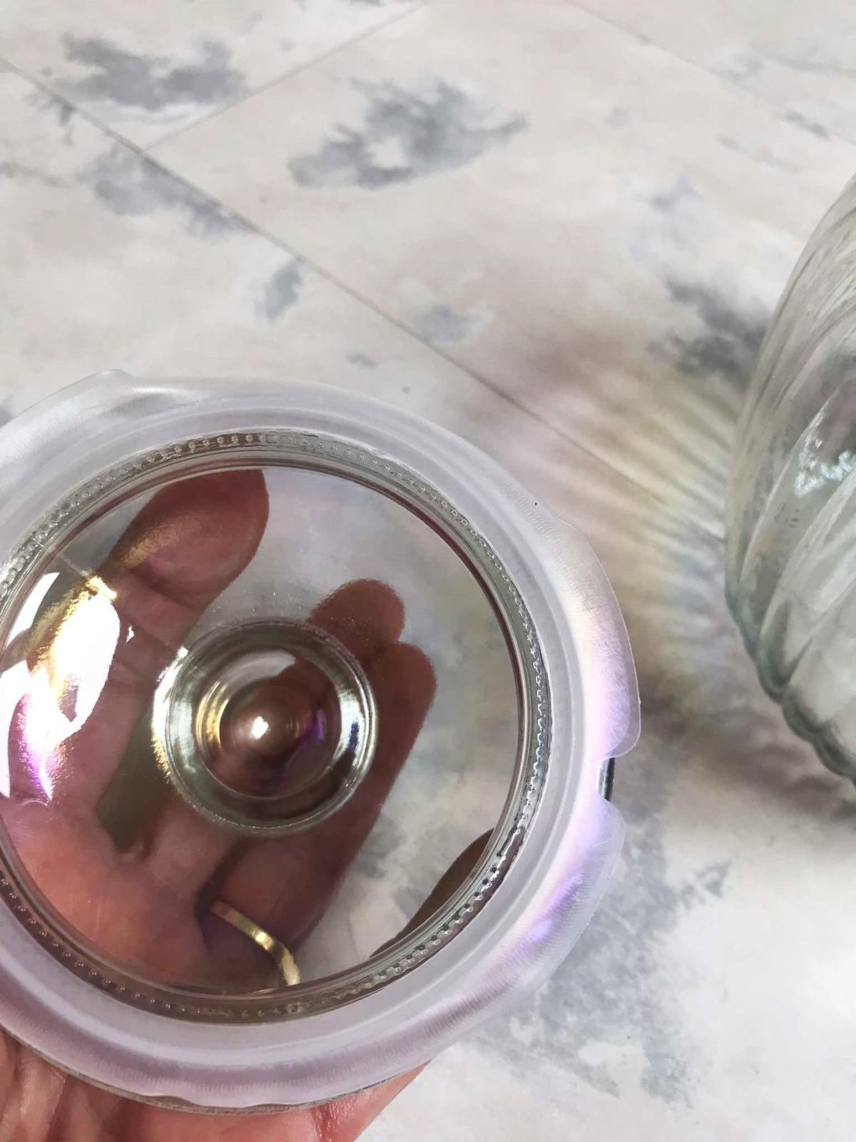 vo svetle hraje rôznymi farbami dúhy,krásny doplnok,je plne funkčná - s tesniacim uzáverom,v top stave,výška = 18 cm,šírka v najširšej časti = 16 cm,spodný priemer = 10 cm,vrchný = 11 cm, dá sa použiť aj ako dóza,alebo krásna váza