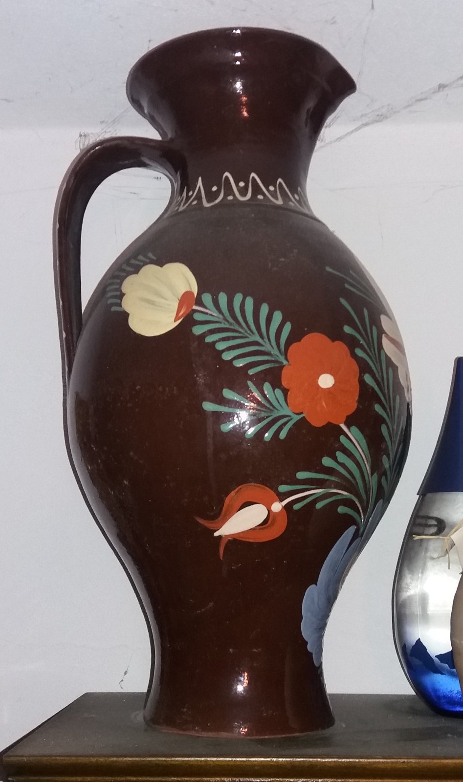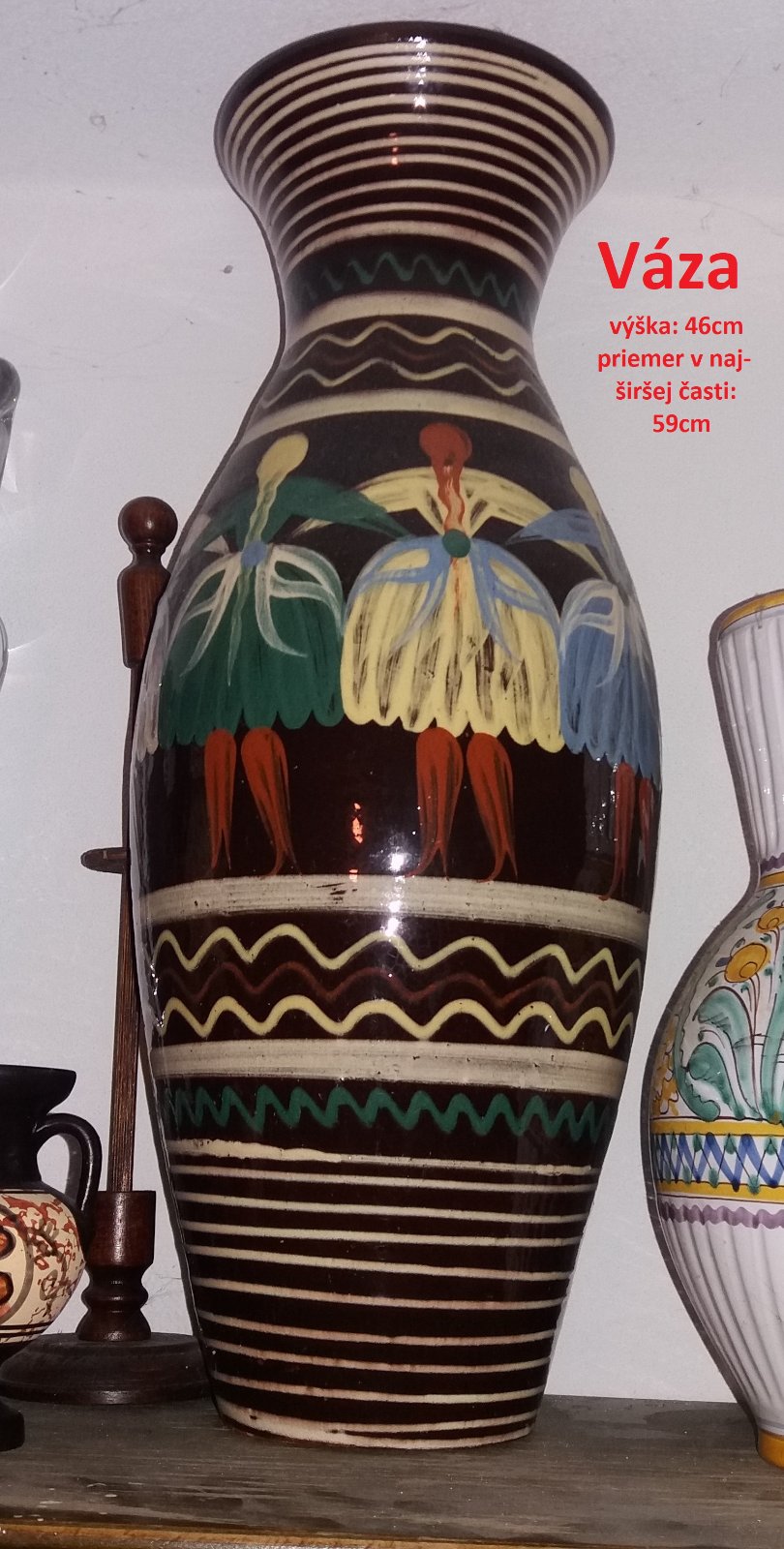 Predám pozdišovskú keramiku: 2 vázy - väčšia 46cm - 40,-EUR, menšia 27cm - 30,- EUR, veľký džbán so 6 pohárikmi - 70,-EUR za všetko - iba spolu a 6ks tanierov - priemer: 18,5cm - 60,-EUR za všetky - iba spolu, rozmery vo fotkách, všetko je v bezchybnom stave - zberateľské kúsky.