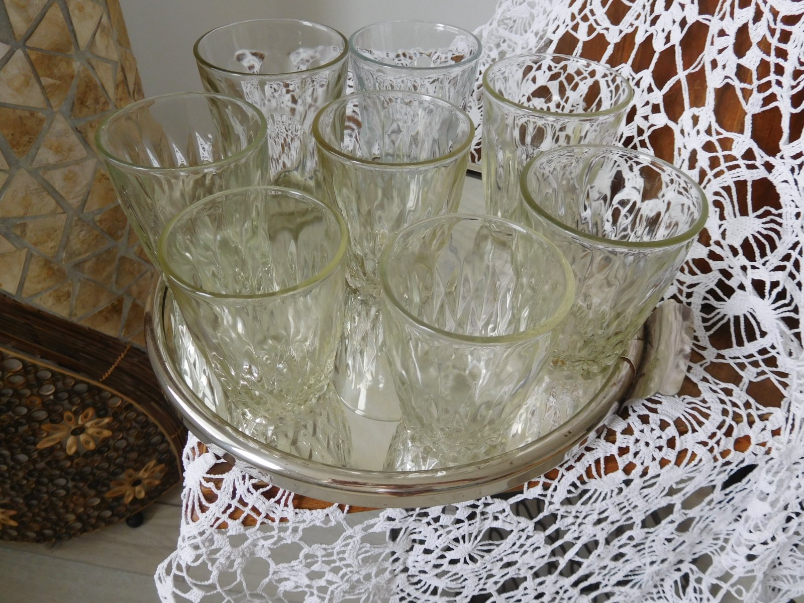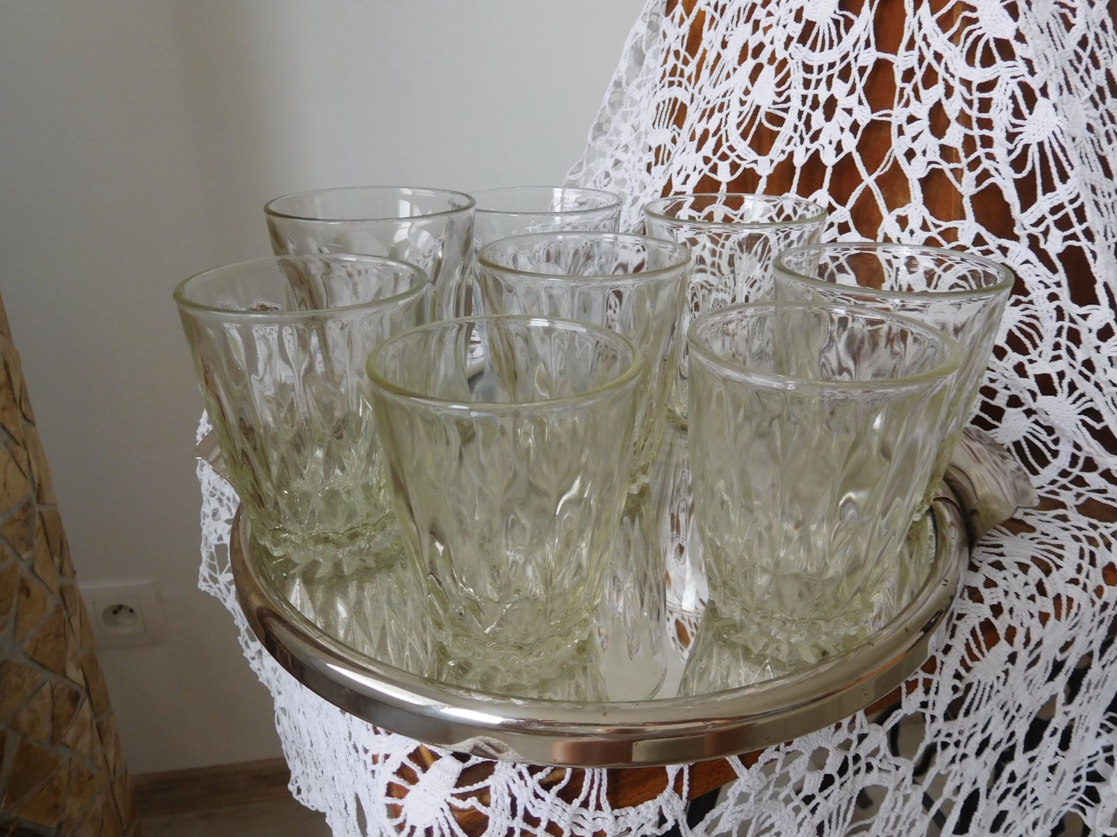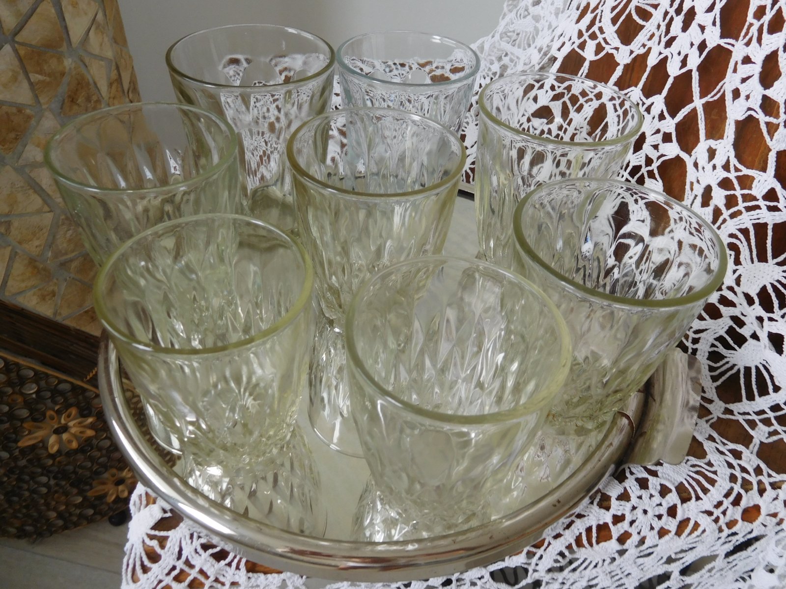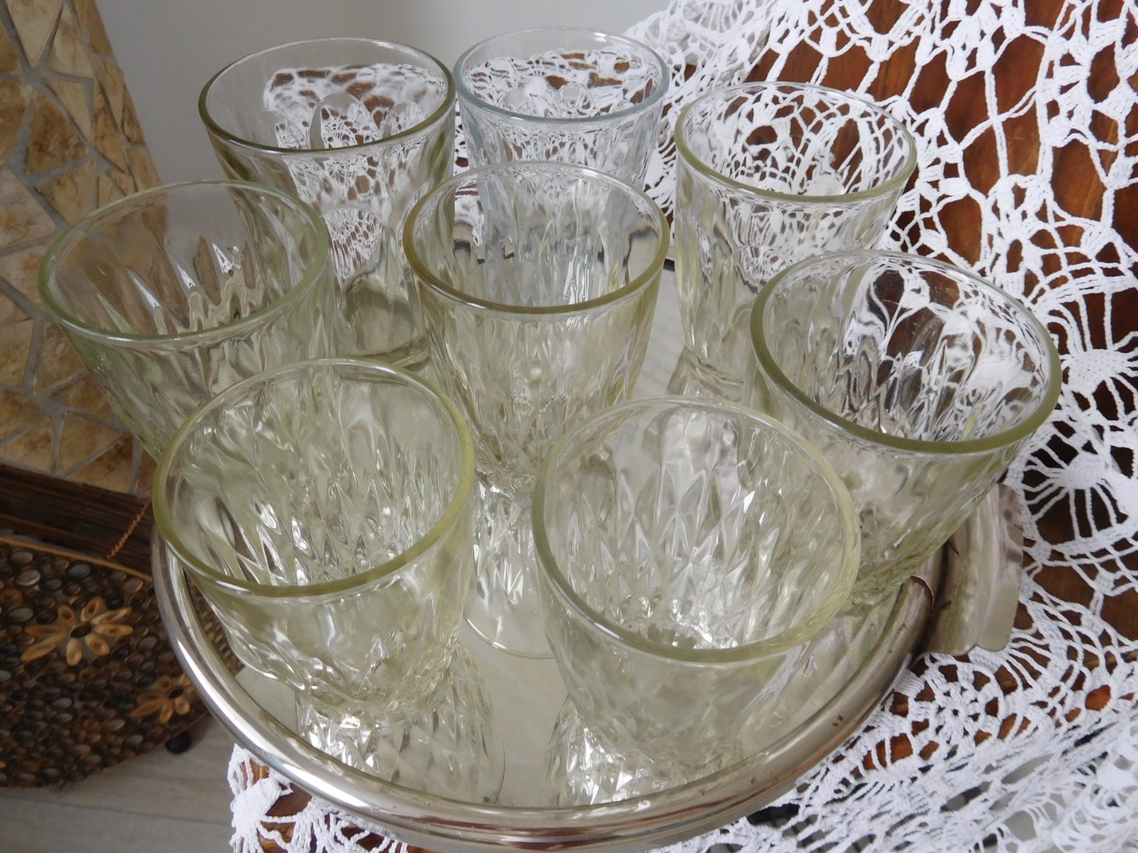 Ponúkam na predaj ako celok tieto poháre v RETRO prevedení po mojej babke,počet 8 kusov rozna veľkosť skor ako nostalgická spomienka či doplnenie, alebo na chalupu, poháre sú bez poškodenia, predaj iba spolu bez podnosu-ten je taktiež na predaj v inom inzeráte,
