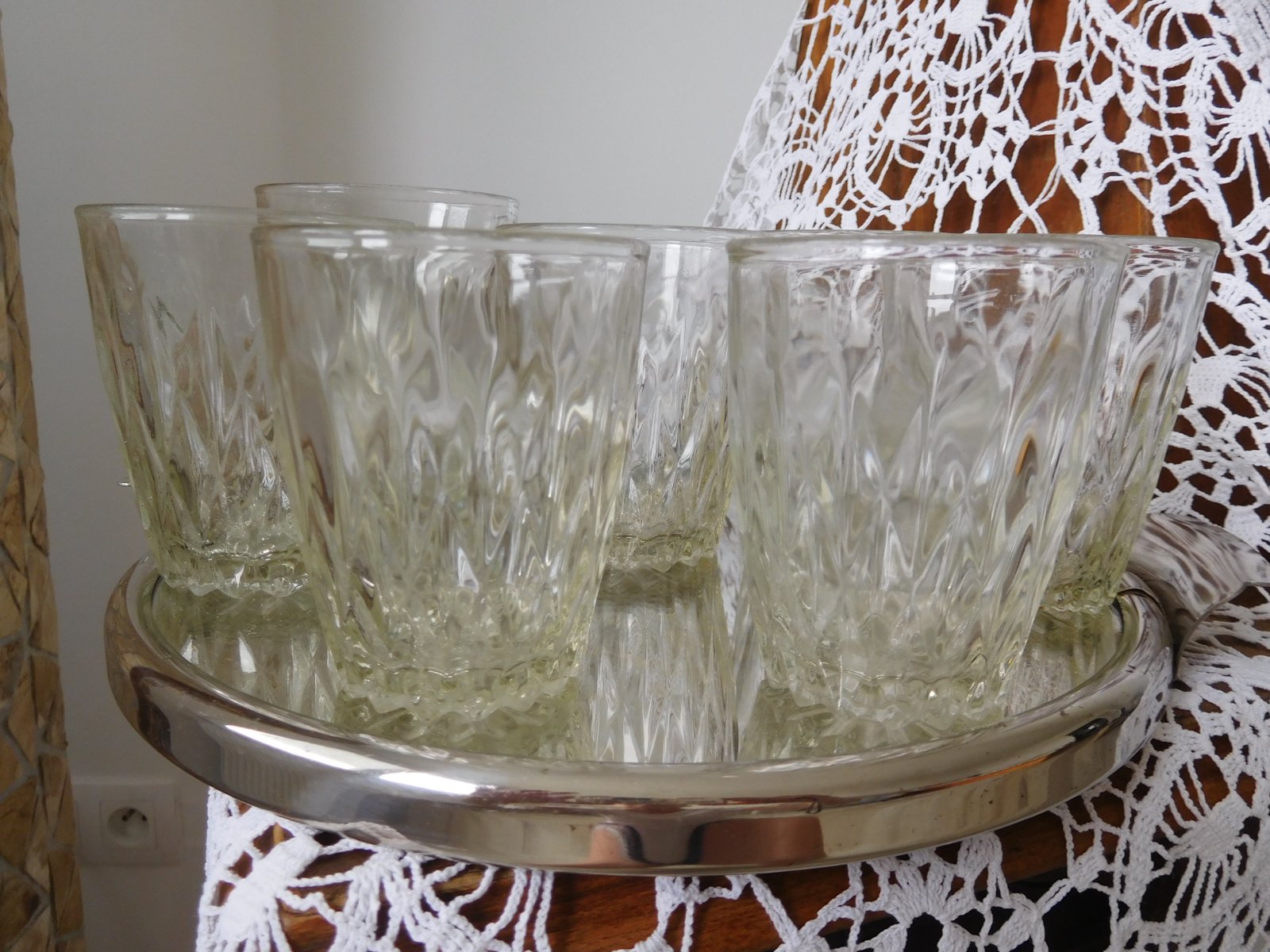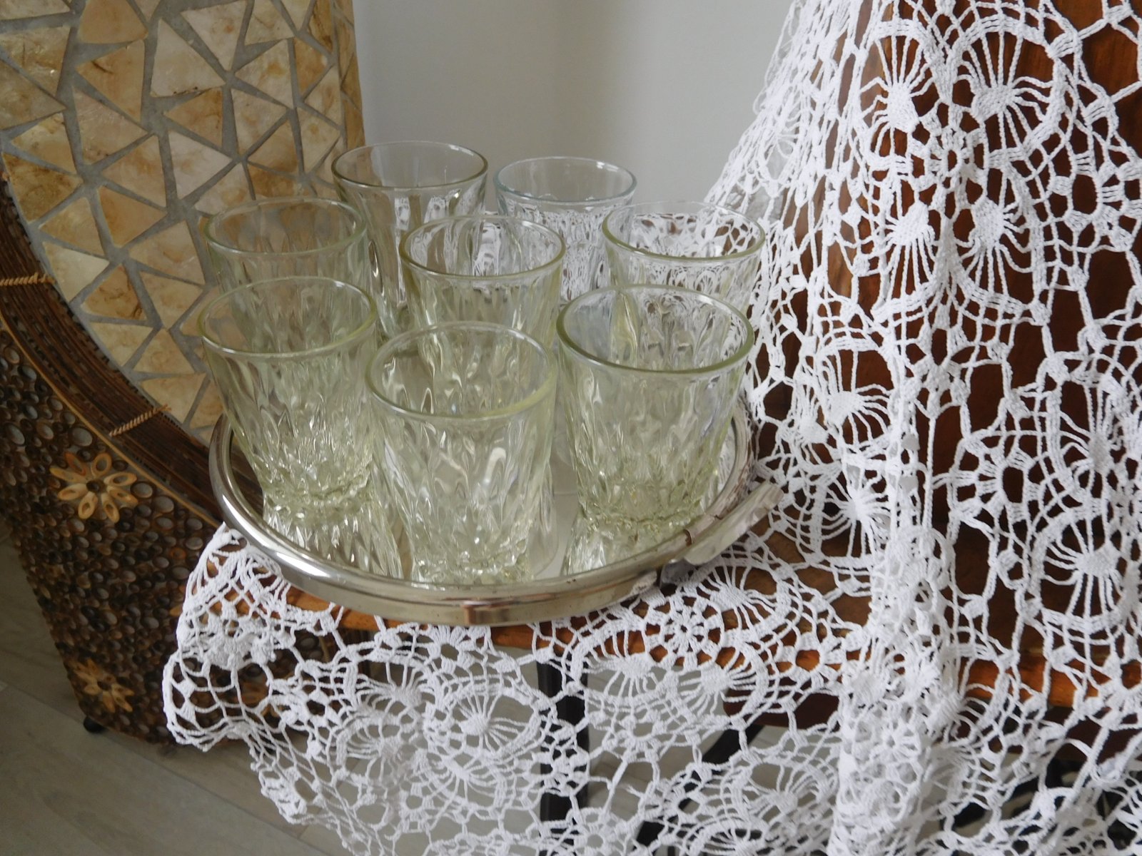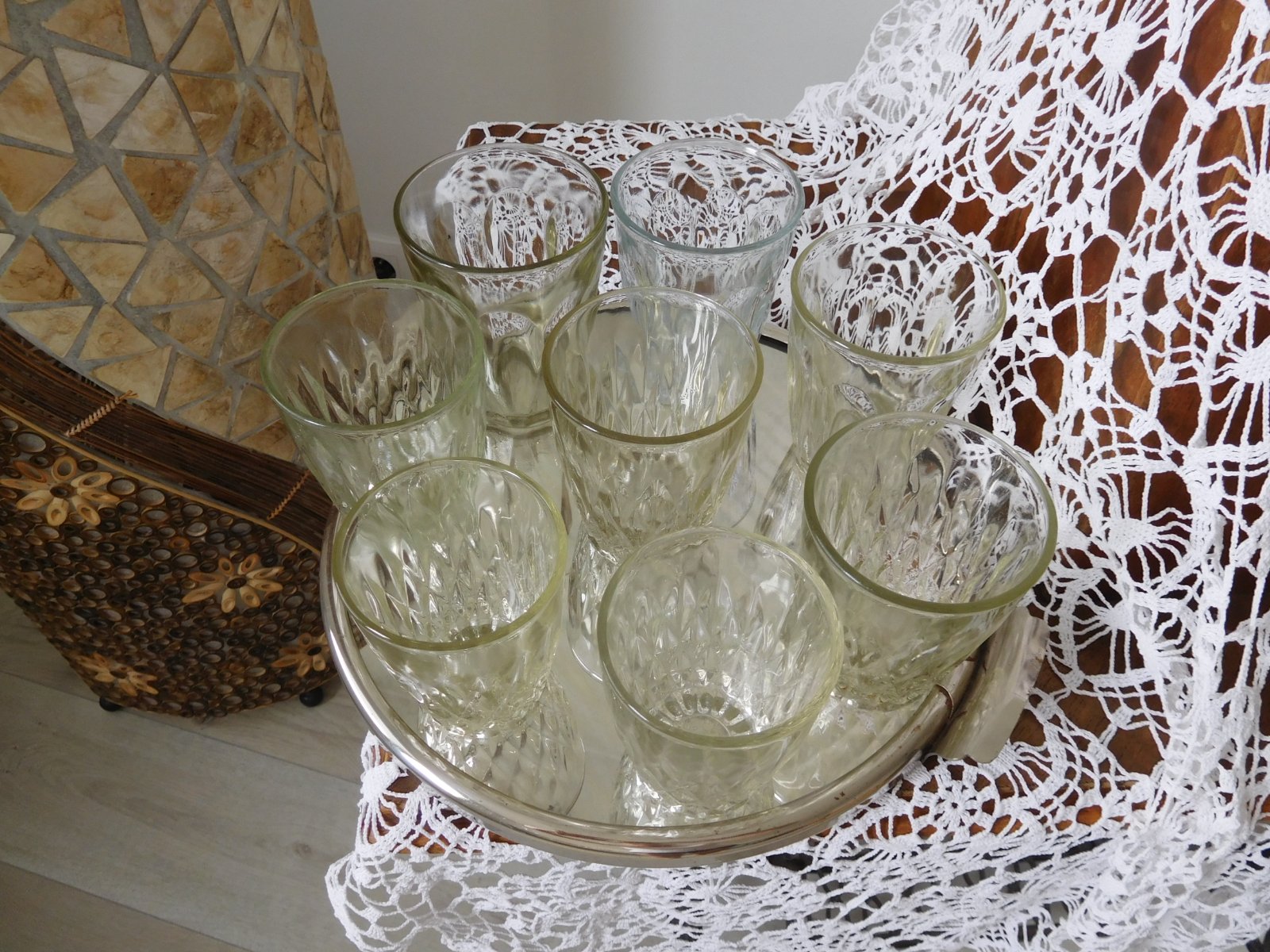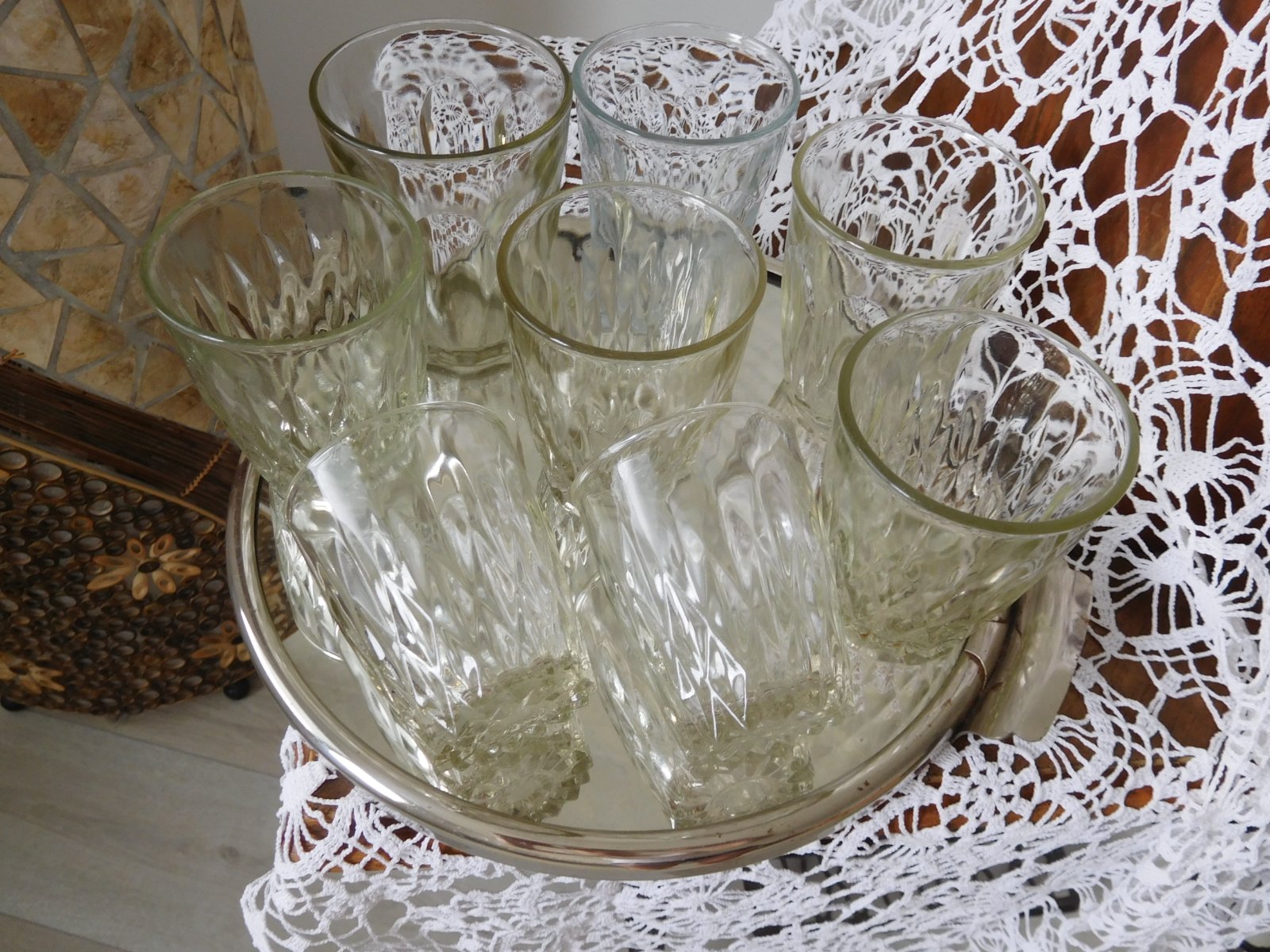 Ponúkam na predaj ako celok tieto poháre v RETRO prevedení po mojej babke,počet 8 kusov rozna veľkosť skor ako nostalgická spomienka či doplnenie, alebo na chalupu, poháre sú bez poškodenia, predaj iba spolu bez podnosu-ten je taktiež na predaj v inom inzeráte,