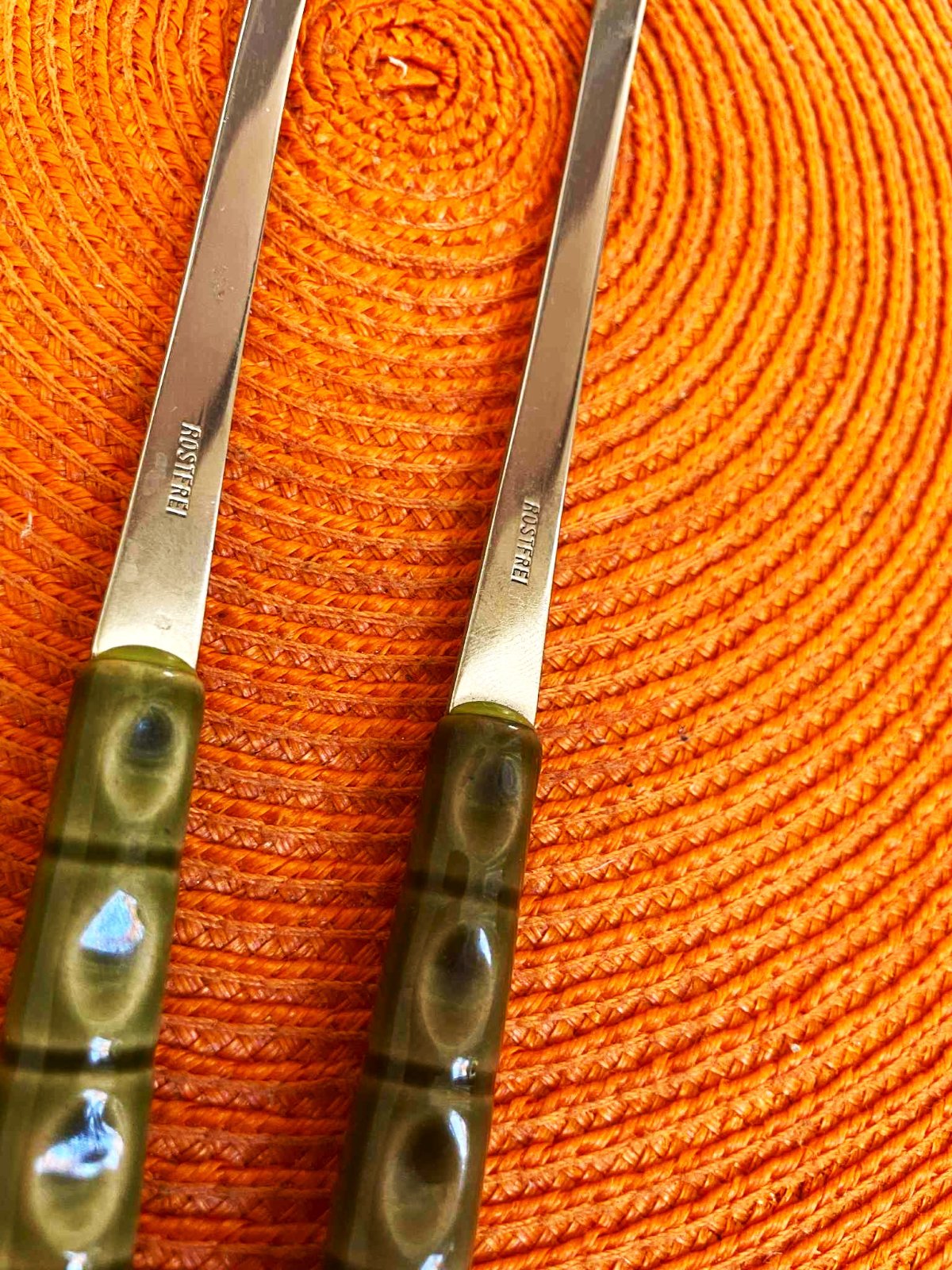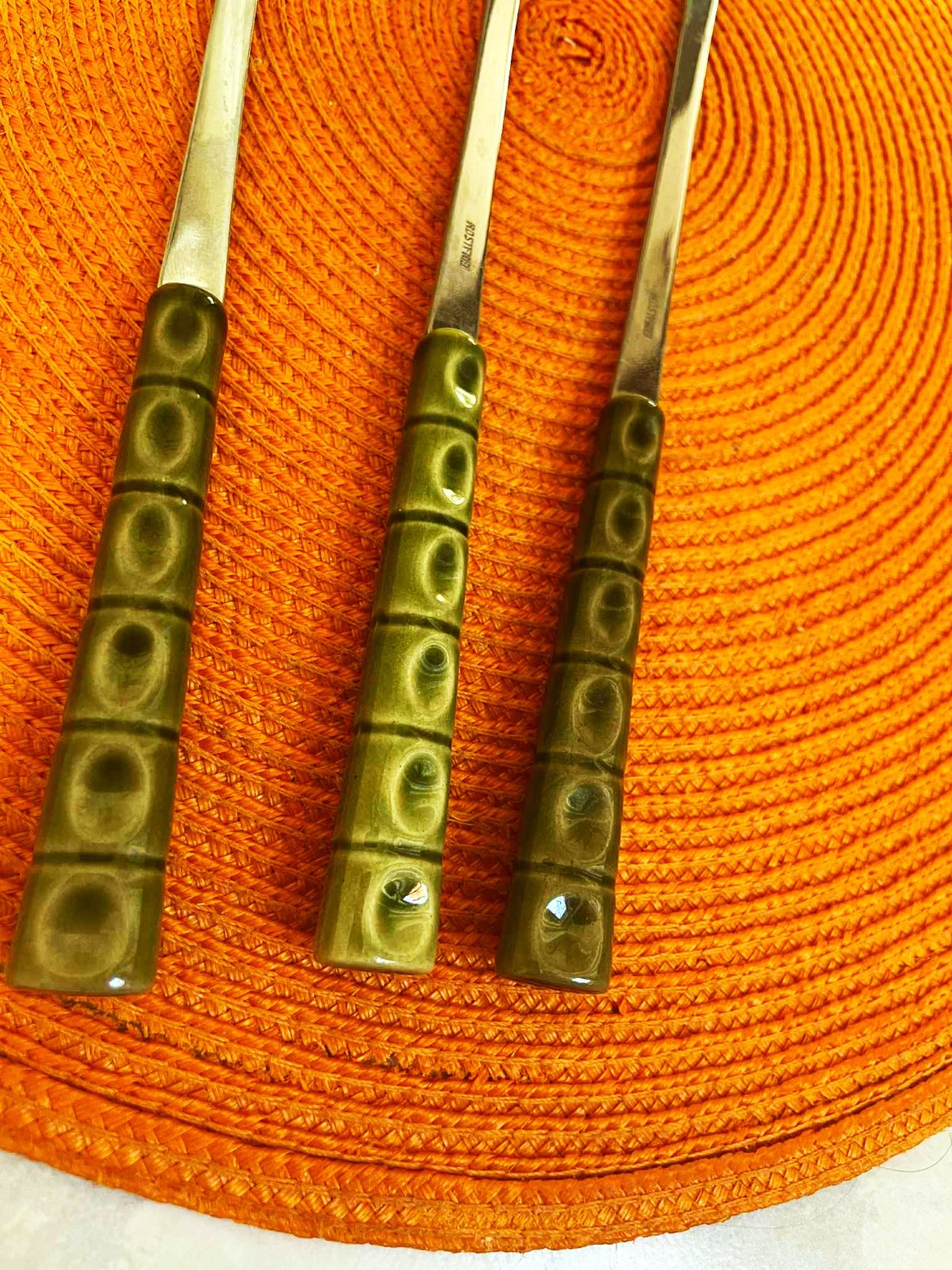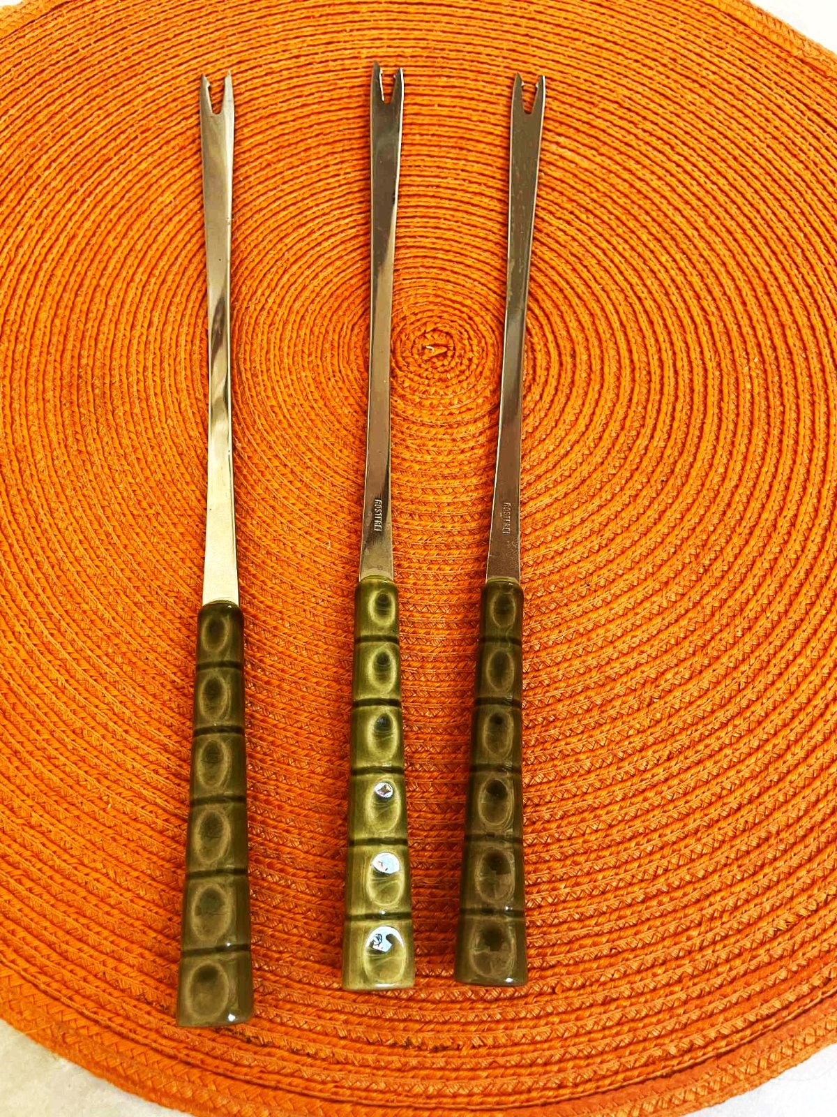 dlhé nerezové kvalitné vidličky s keramickými rúčkami známej značky Collini Rostfrei - z kvalitnej nehrdzavejúcej ocele,málo užívané,dlžka = 26 cm,z toho keramická rúčka 9 cm