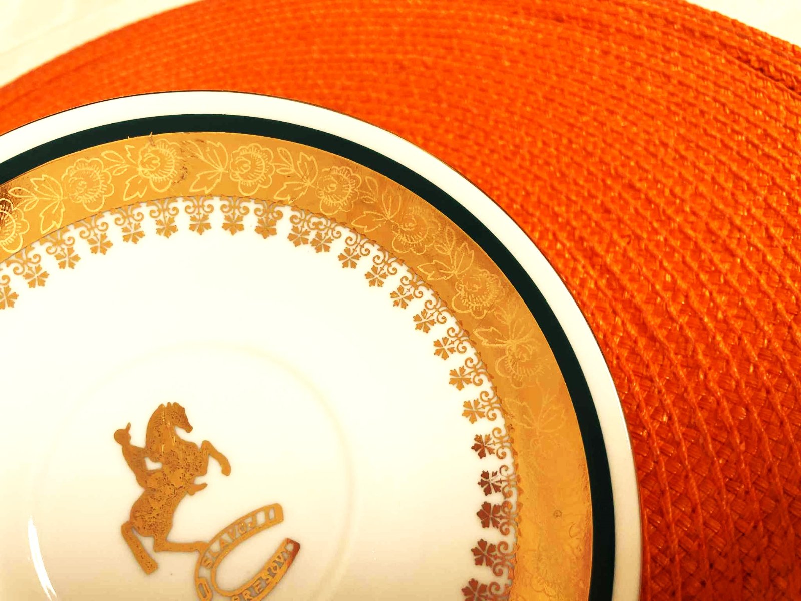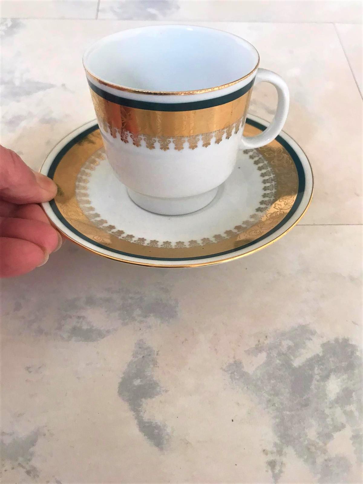 luxusná kávová súprava z porcelánu,priemer tanierika = 14 cm, výška šálky = 7 cm, priemer šálky = 7 cm,bola iba vo vitríne vystavená,pozri aj :