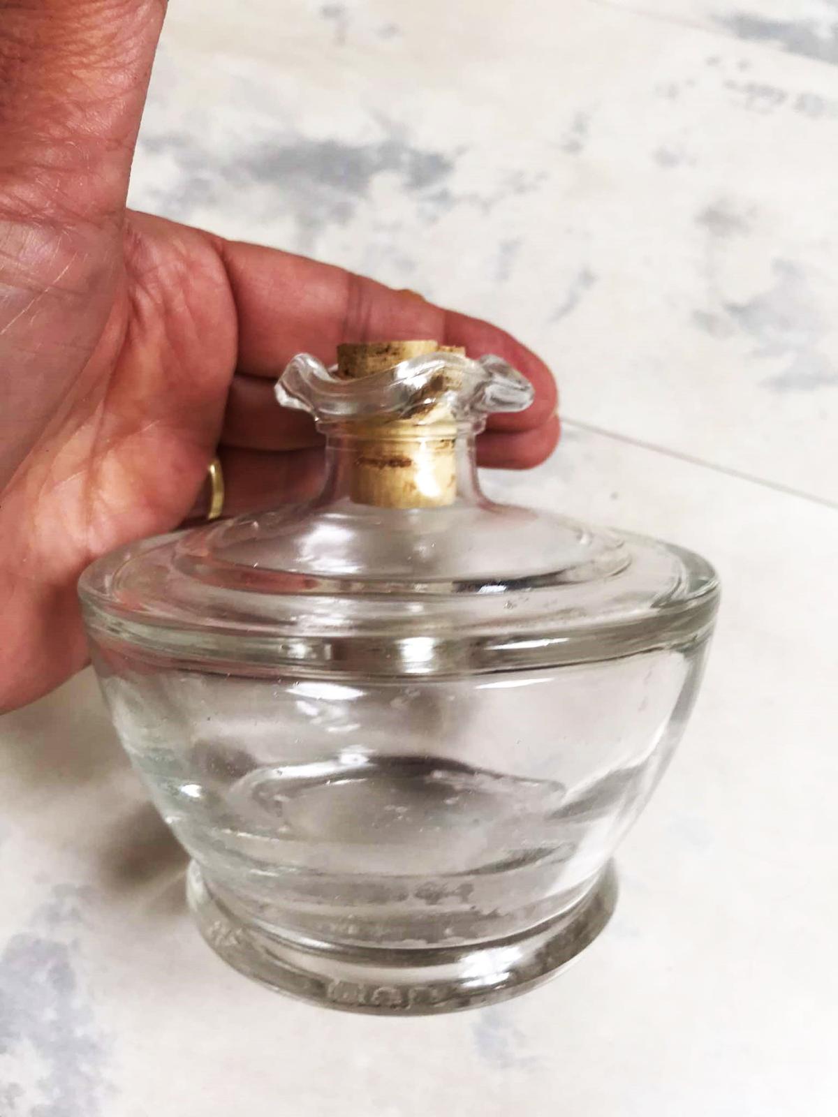 veľmi stará ,nepoškodená,výška = 11 cm, priemer = 11 cm, zaujímavý dizajn,hrubšie nerozbitné sklo,pozri aj :