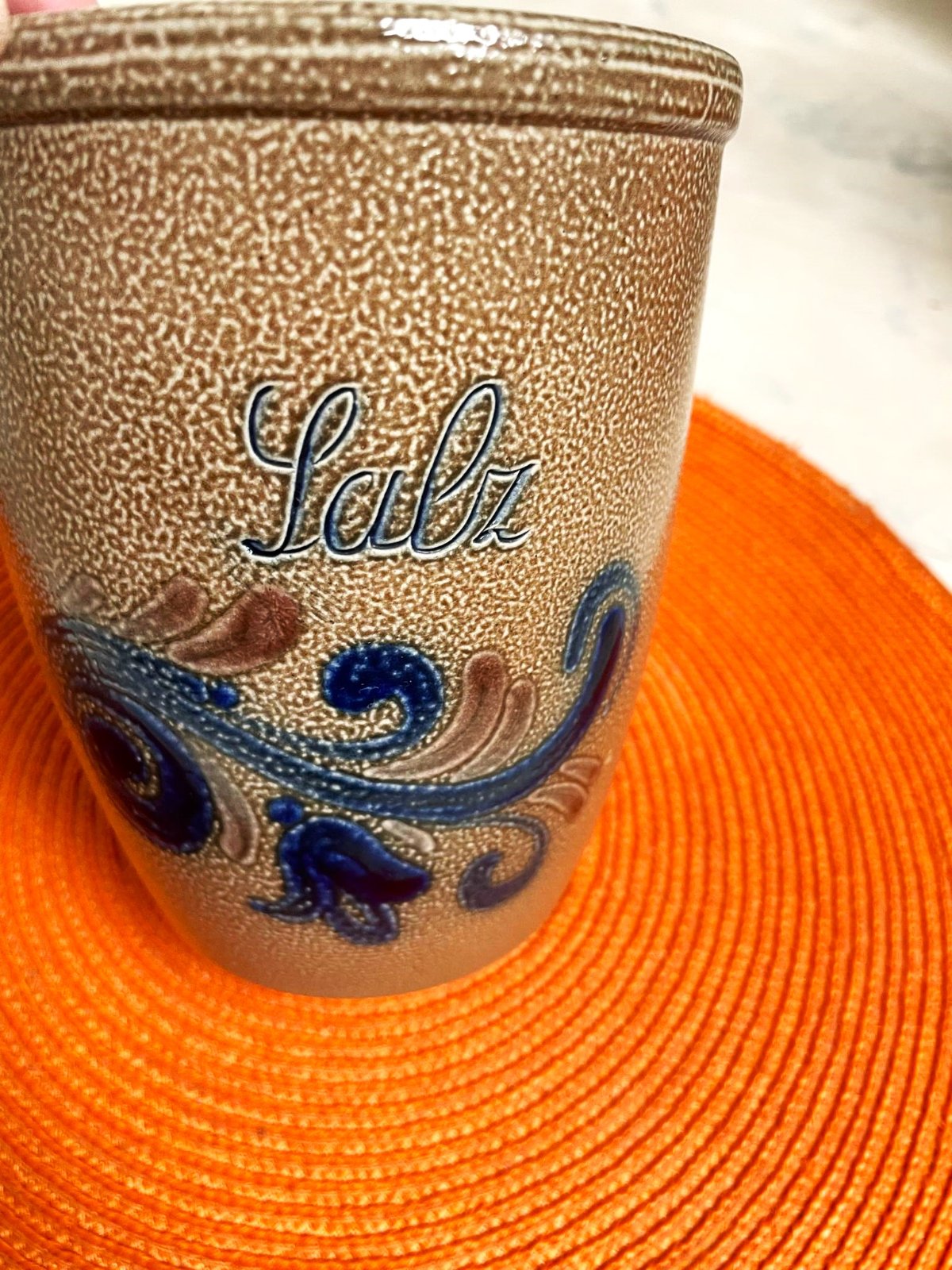 krásna keramická nádoba na soľ,výška = 14cm,horný priemer = 12 cm