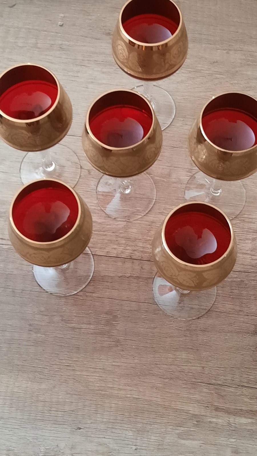 Krásne menšie poháre na víno z rubínového skla, sada 6 ks.