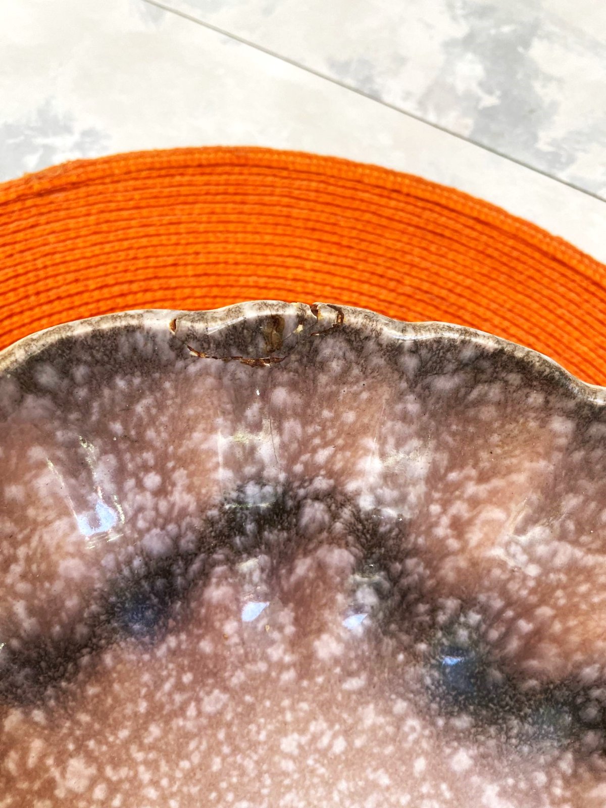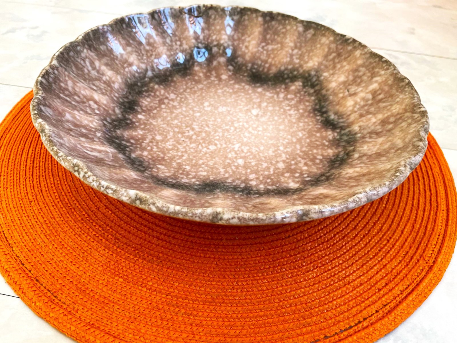 krásna stará nevšedná misa,zaujímavý vzor,na boku jemne odštiepené,ale na pohľad to nie je vidno, fotka "závady" zväčšená - upozorňujem....priemer = 27 cm