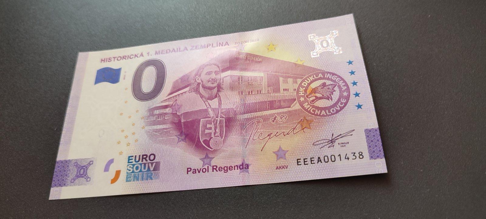 Eurobankovka s tvarou hokejistu Pavol Regenda