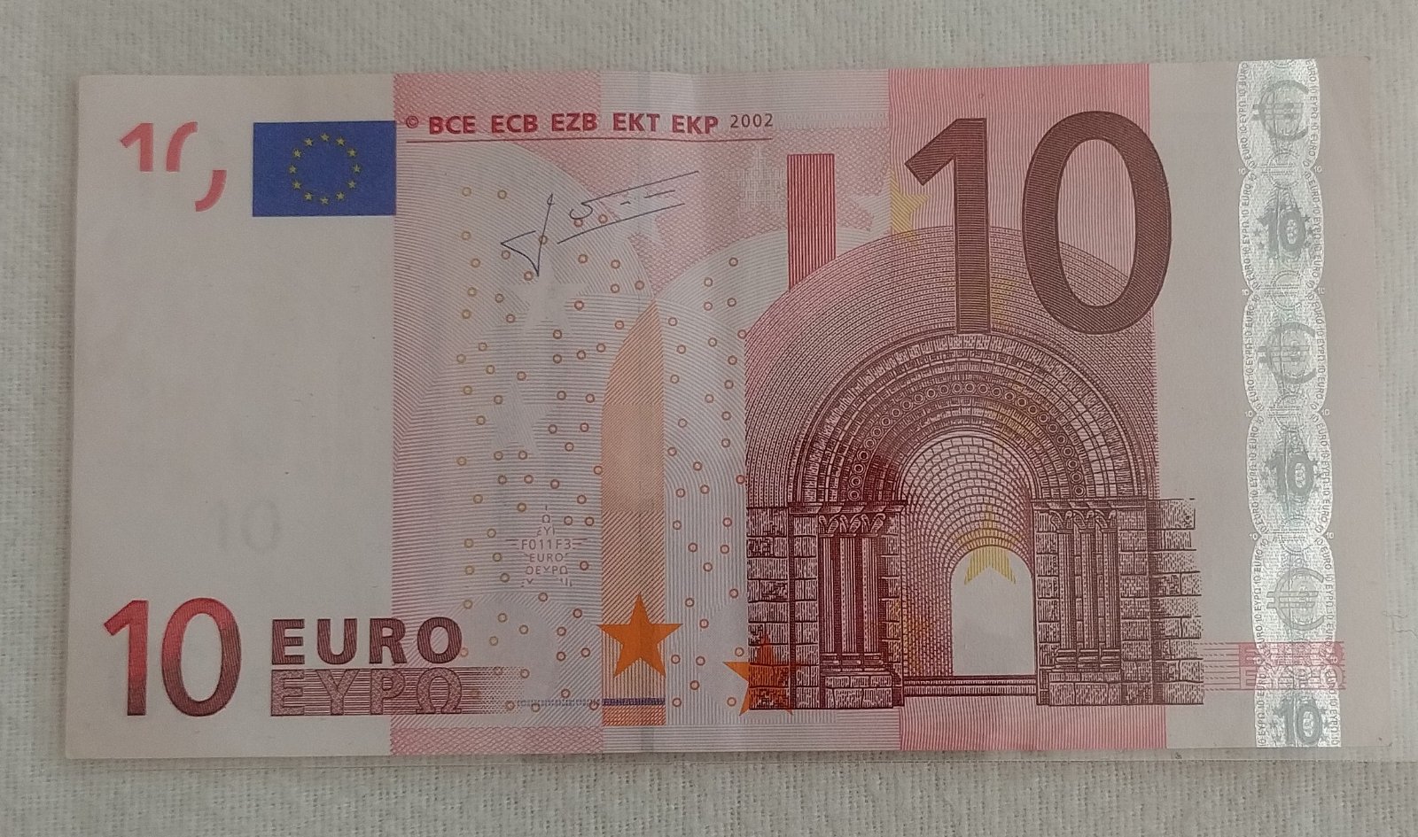 Predám krásnu 10 eurovú bankovku prvej série z roku 2002 z obehu, stav viď foto