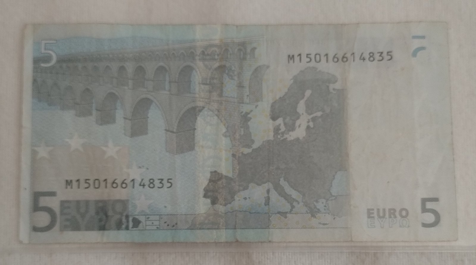 Predám 5 eurovú bankovku prvej série z roku 2002 z obehu, stav viď foto.