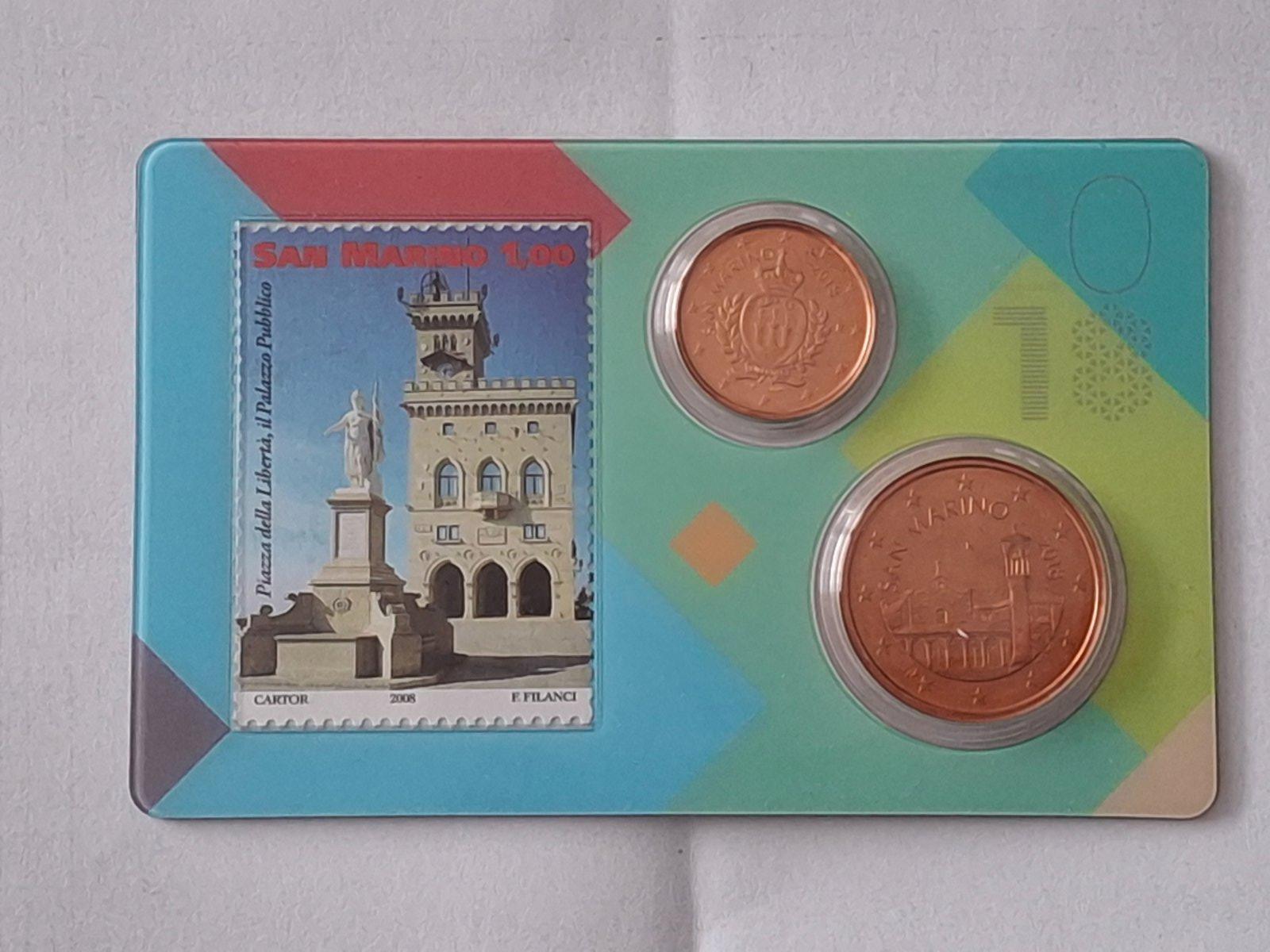 Mincová karta nominálnej hodnoty 1 a 5 Cent so známkou nominálnej hodnoty 1 Euro San Maríno 2018 n.01