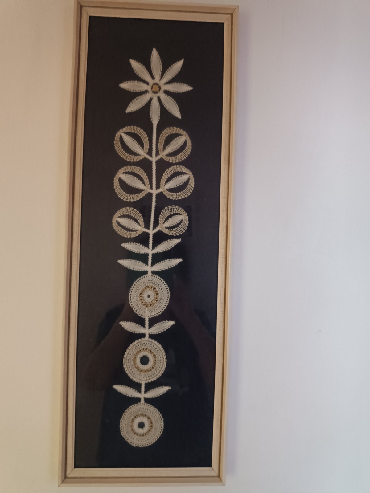 Slovenská paličkova čipka , súčasť ludovej kultury, zarámovane 75x 25cm,