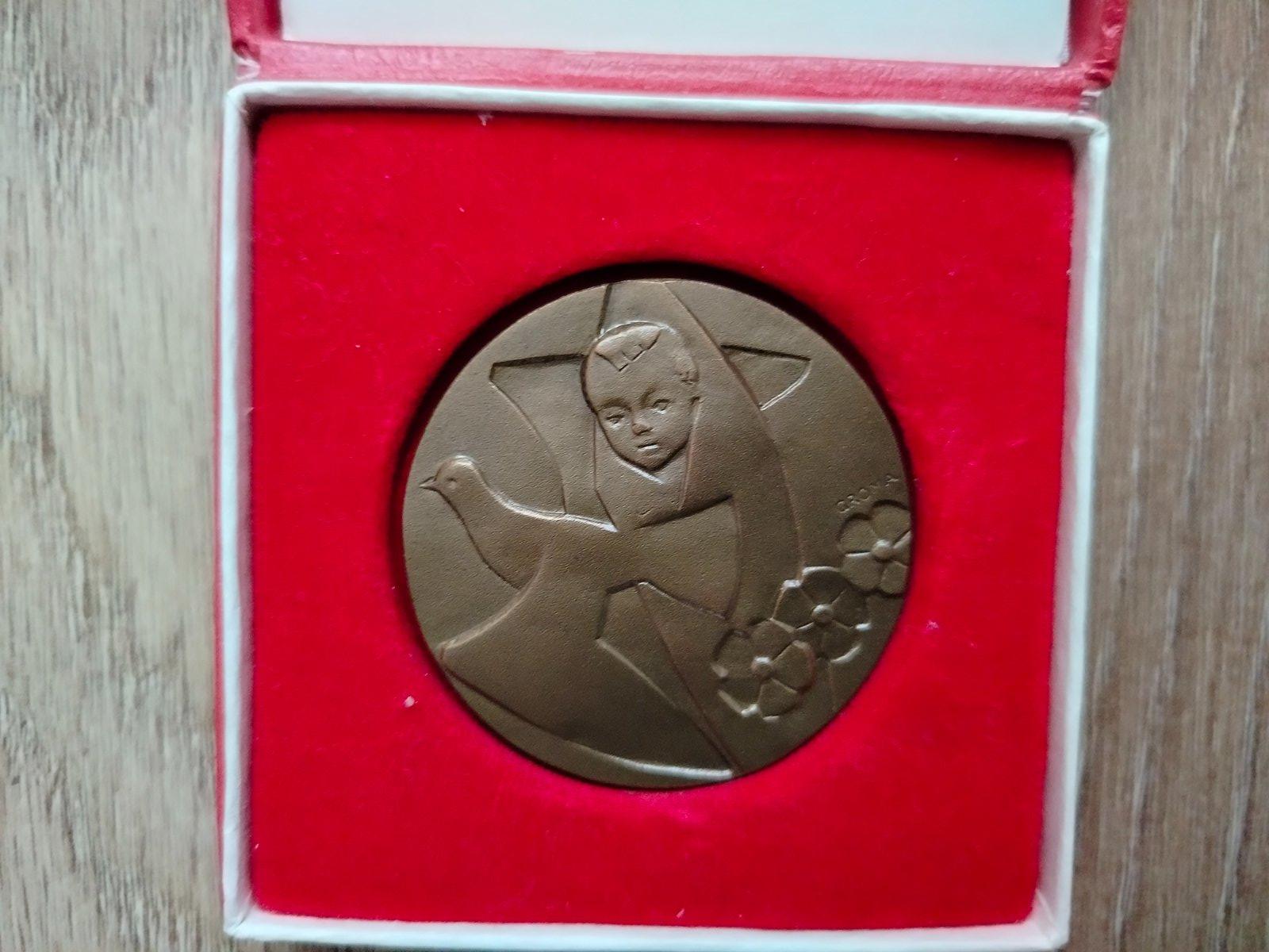 Stav: výborný, bez výrazného opotrebovania. Dodám v originálnej červenej kazete (ako na fotkách). Medaila pochádza z kolekcie pamätných medailí, objavuje sa aj v zbierkach galérií (napr. Galéria Jána Koniarka). Pekný darček pre zberateľa medailí, milovníka umenia alebo ako symbolický dar s motívom detí a mieru (holubica).