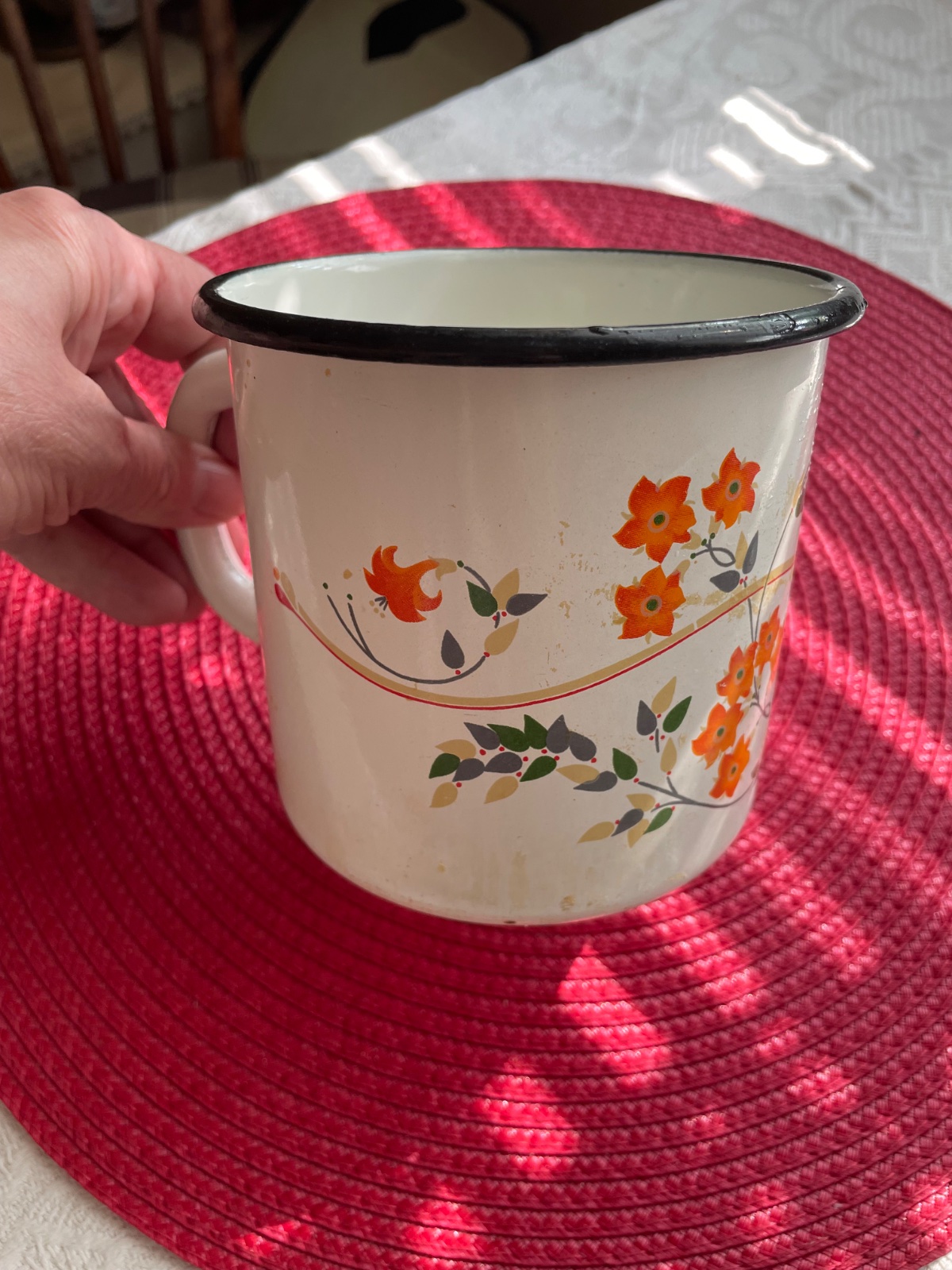 Smaltovaný starý hrnček