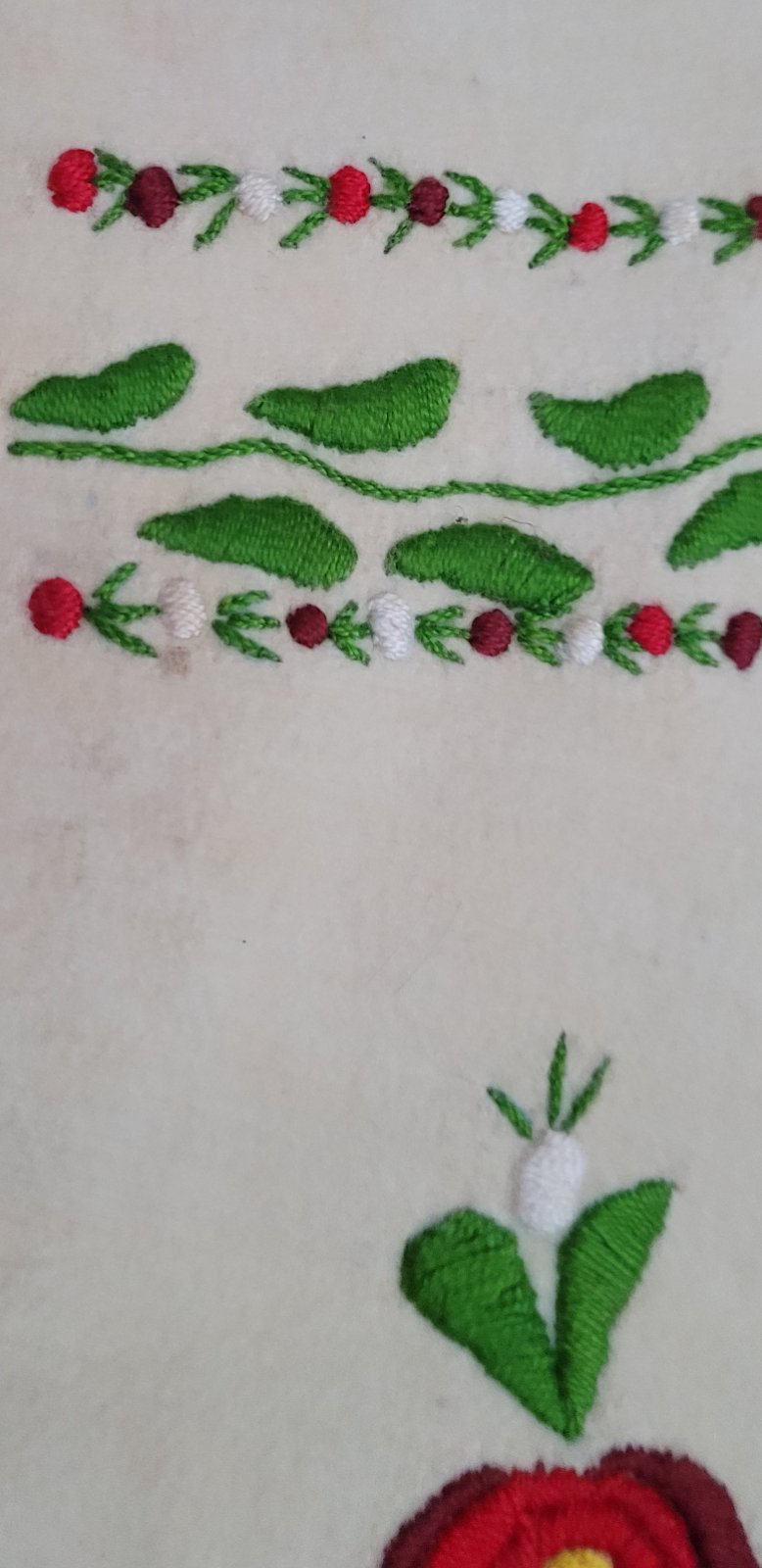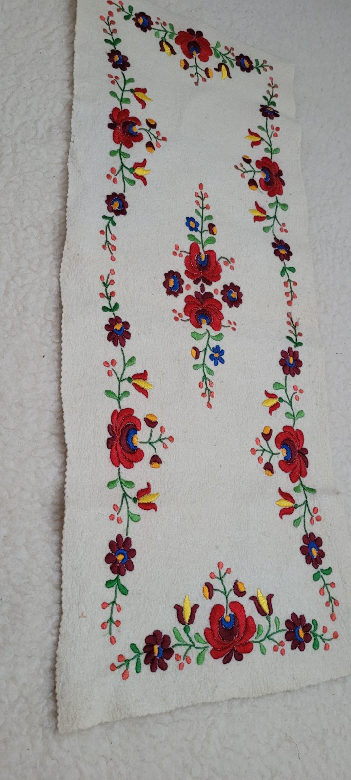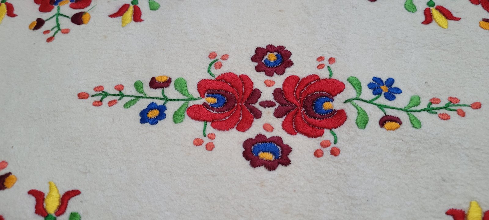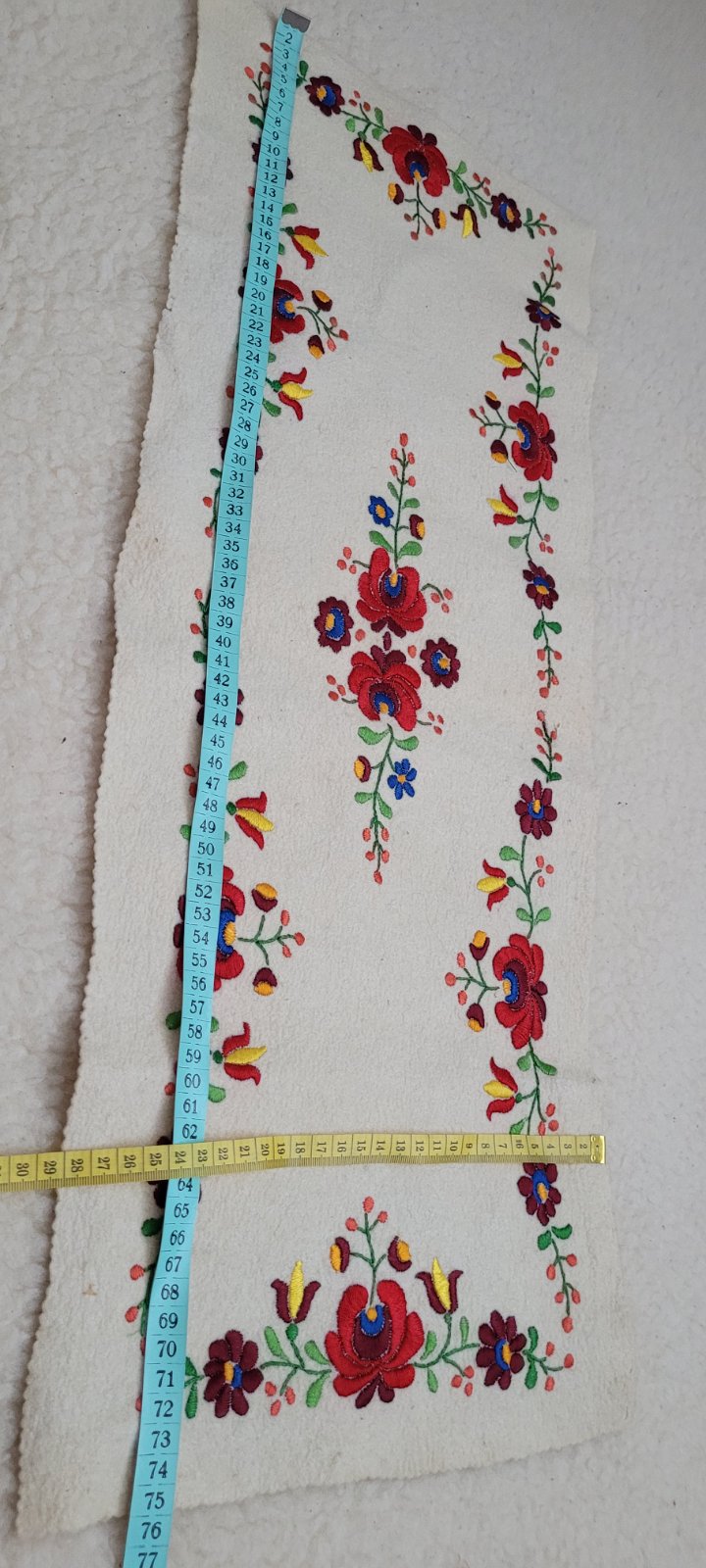 Ručne vyšívaný obrus s tradičnými ľudovými motívmi. Materiál: flic