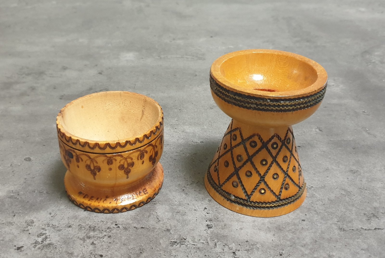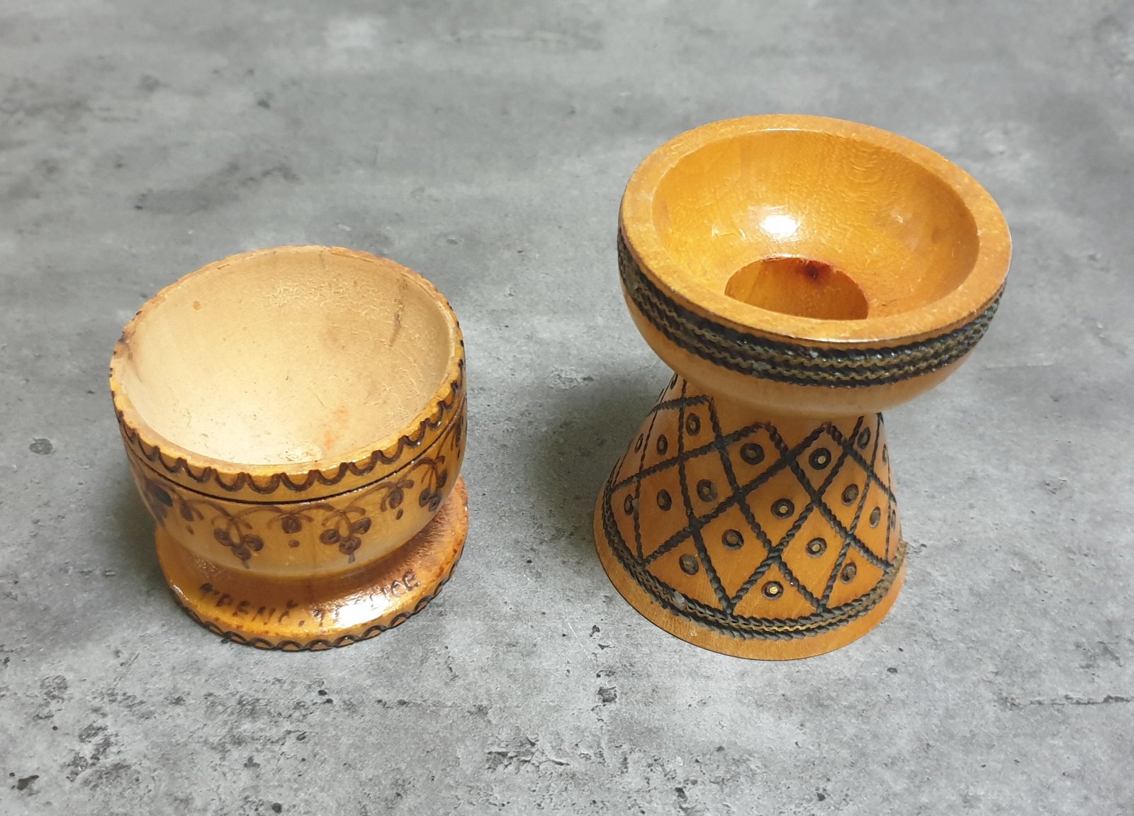 Predám starý drevený svietnik (výška 7,5 cm) a malú misku (výška 5 cm), cena spolu 3 eurá plus poštovné.