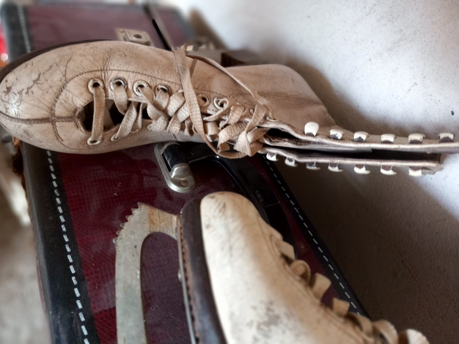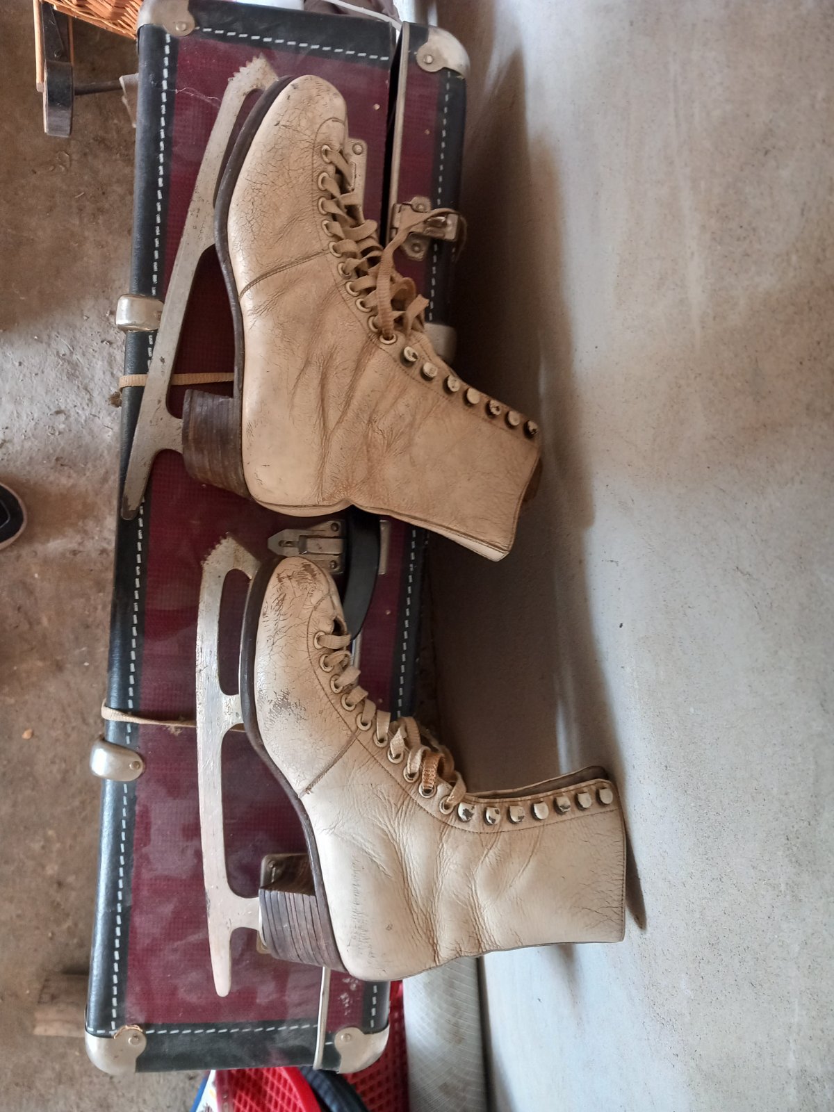 Stare korčule, vhodné ako dekorácia či na fotenie. Kufor zdarma