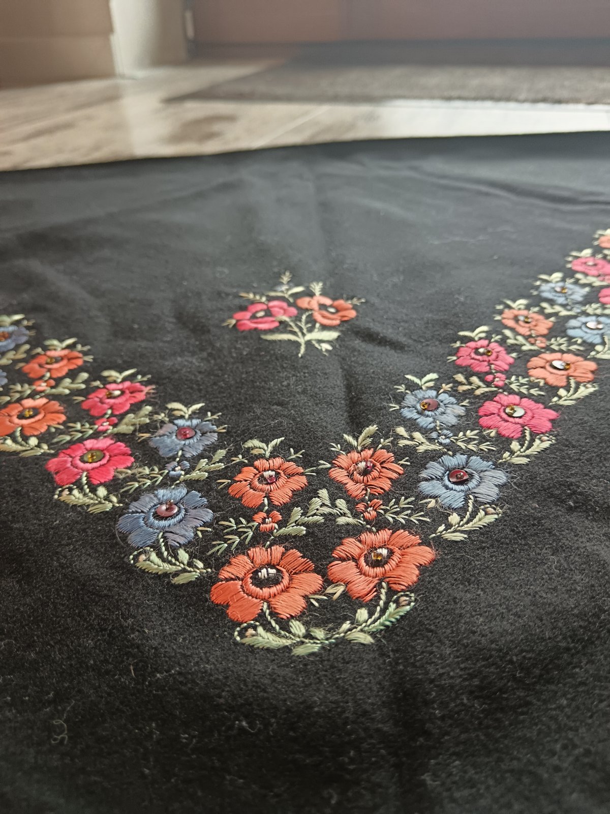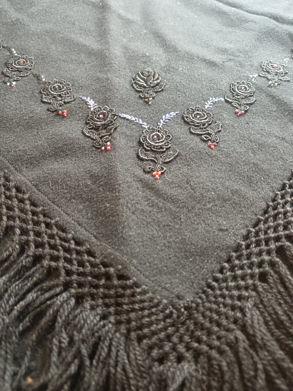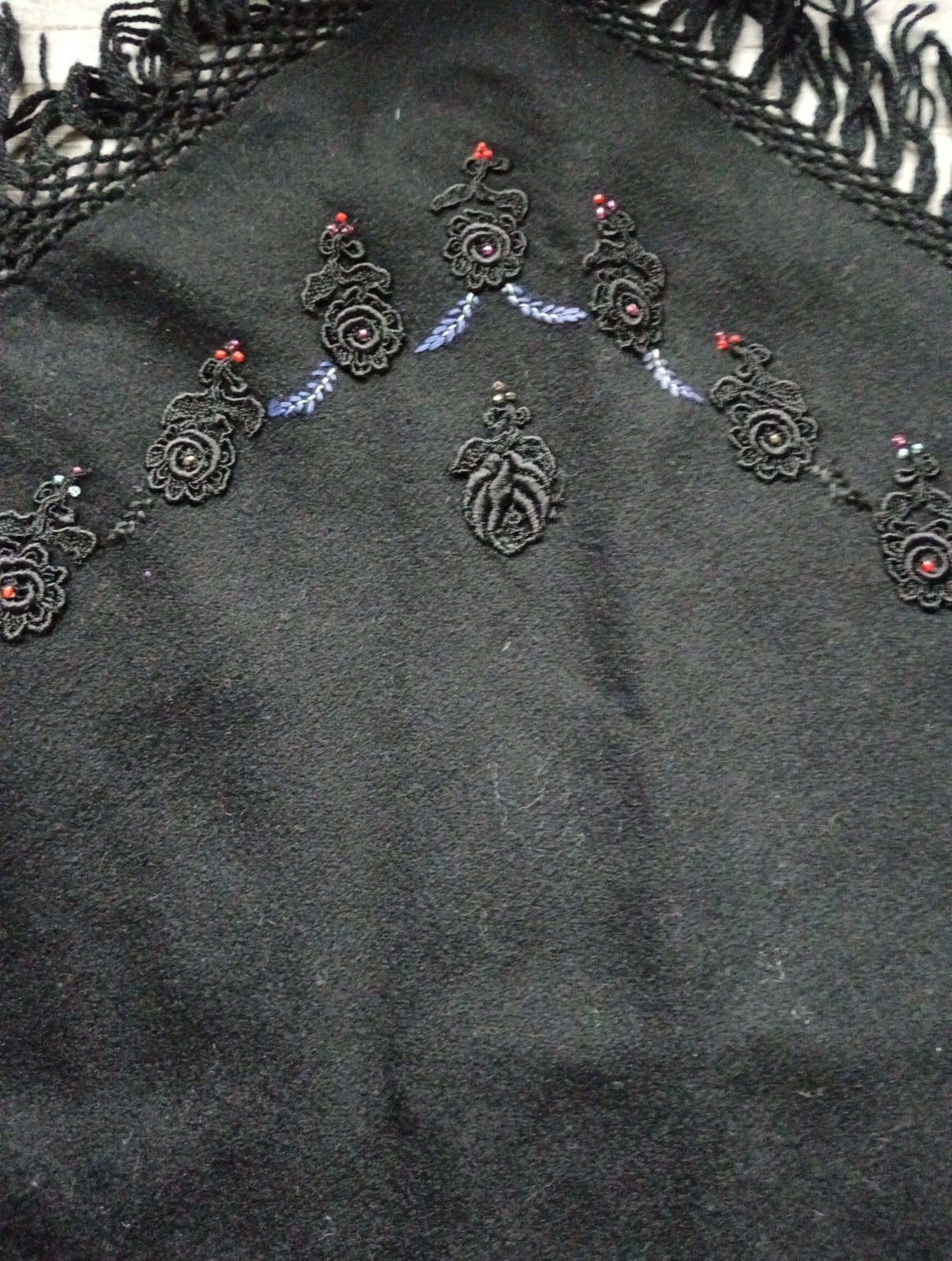 Úžasný folklórny ale aj vintage kúsok. Vhodné prerobiť na krátke pončo ako extravagantný kúsok k rifliam, sukni, nohaviciam