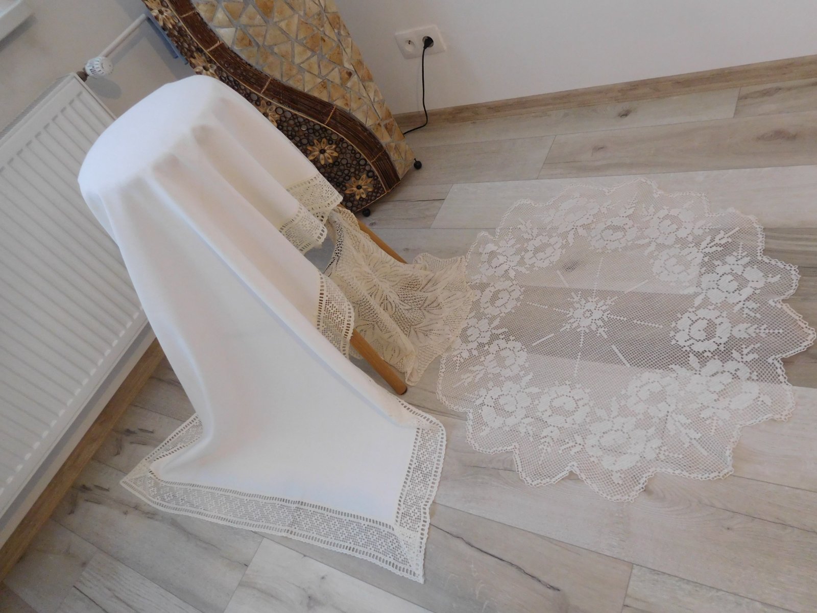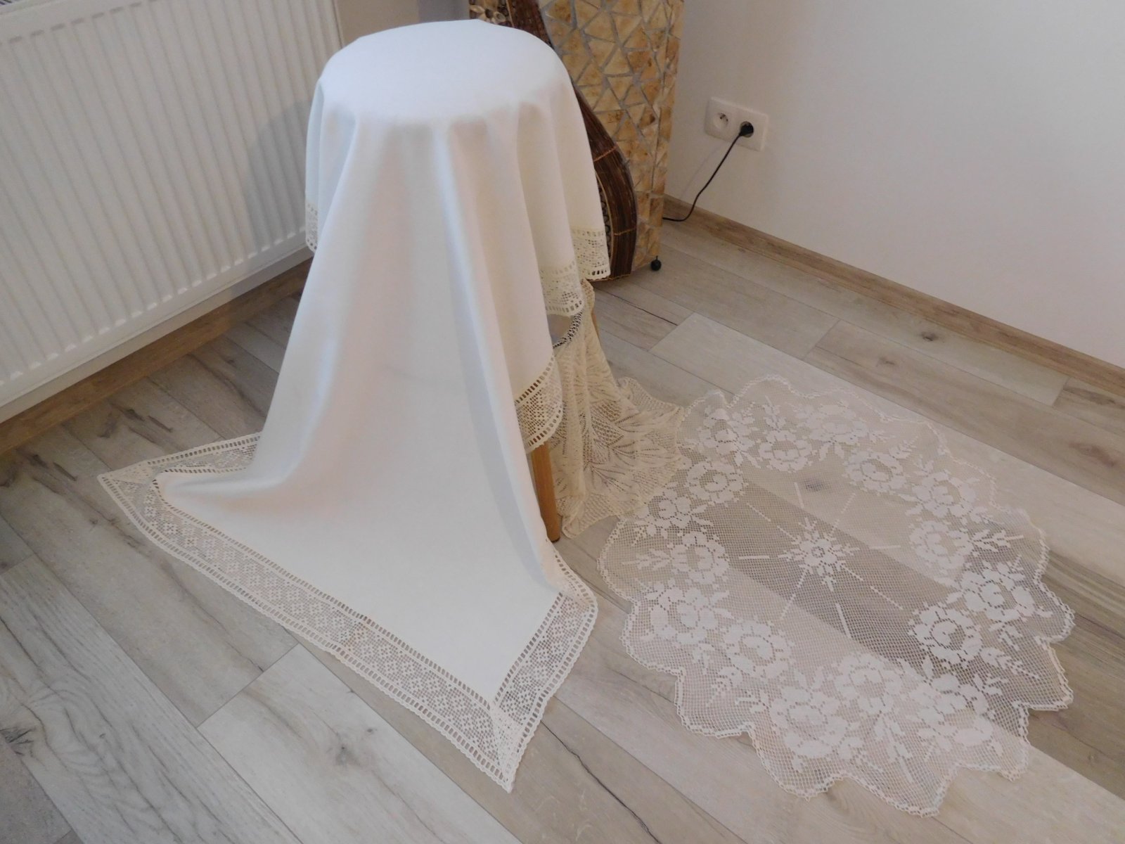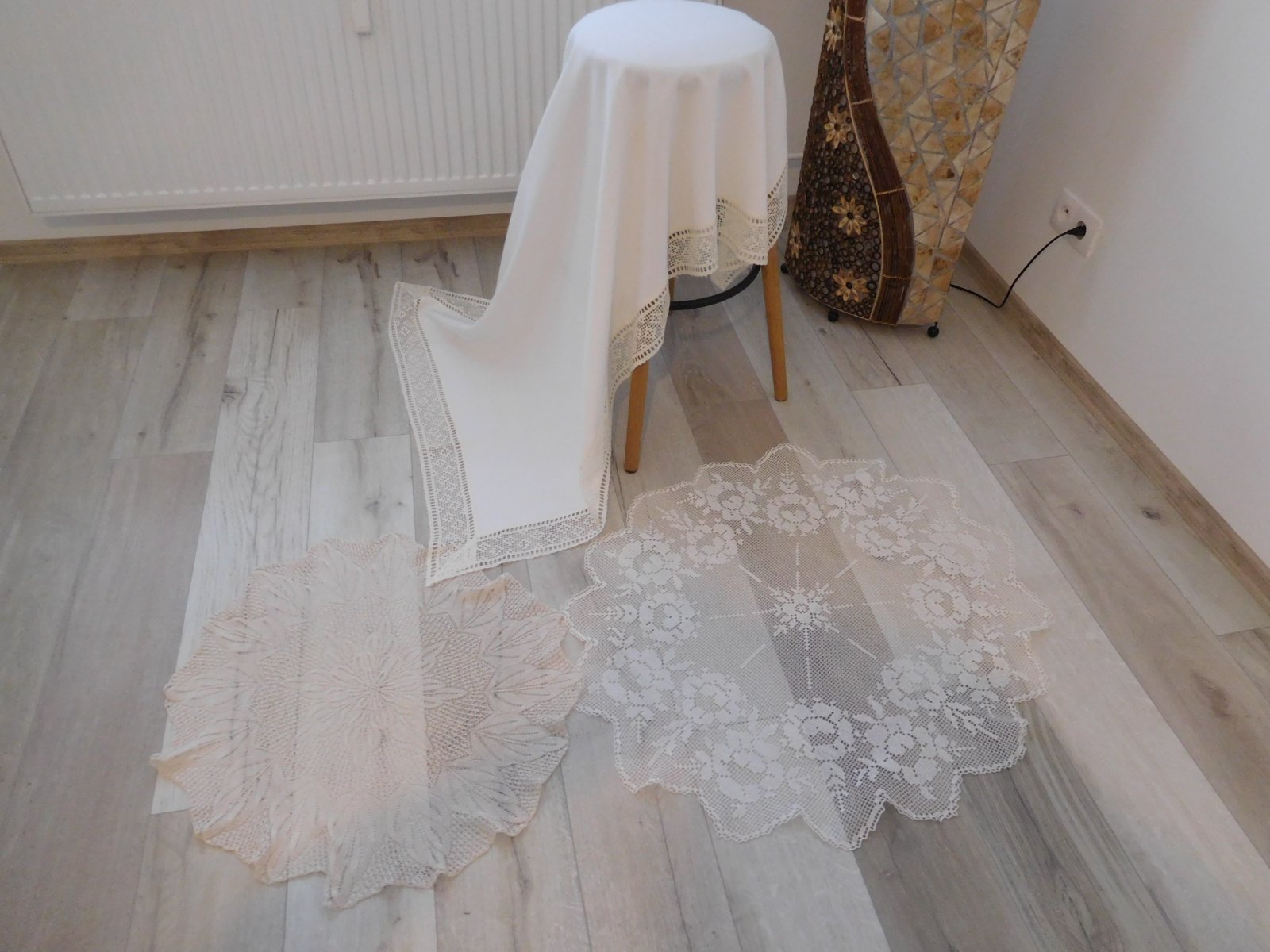 Biely obrus s krajkou + 2 x háčkovaná dečka