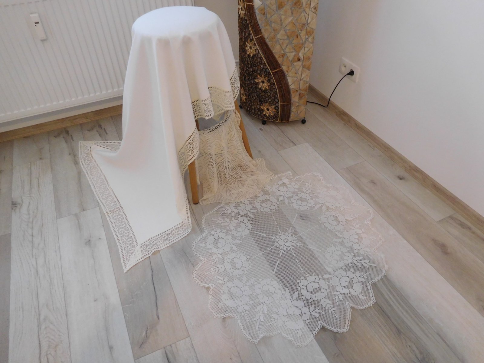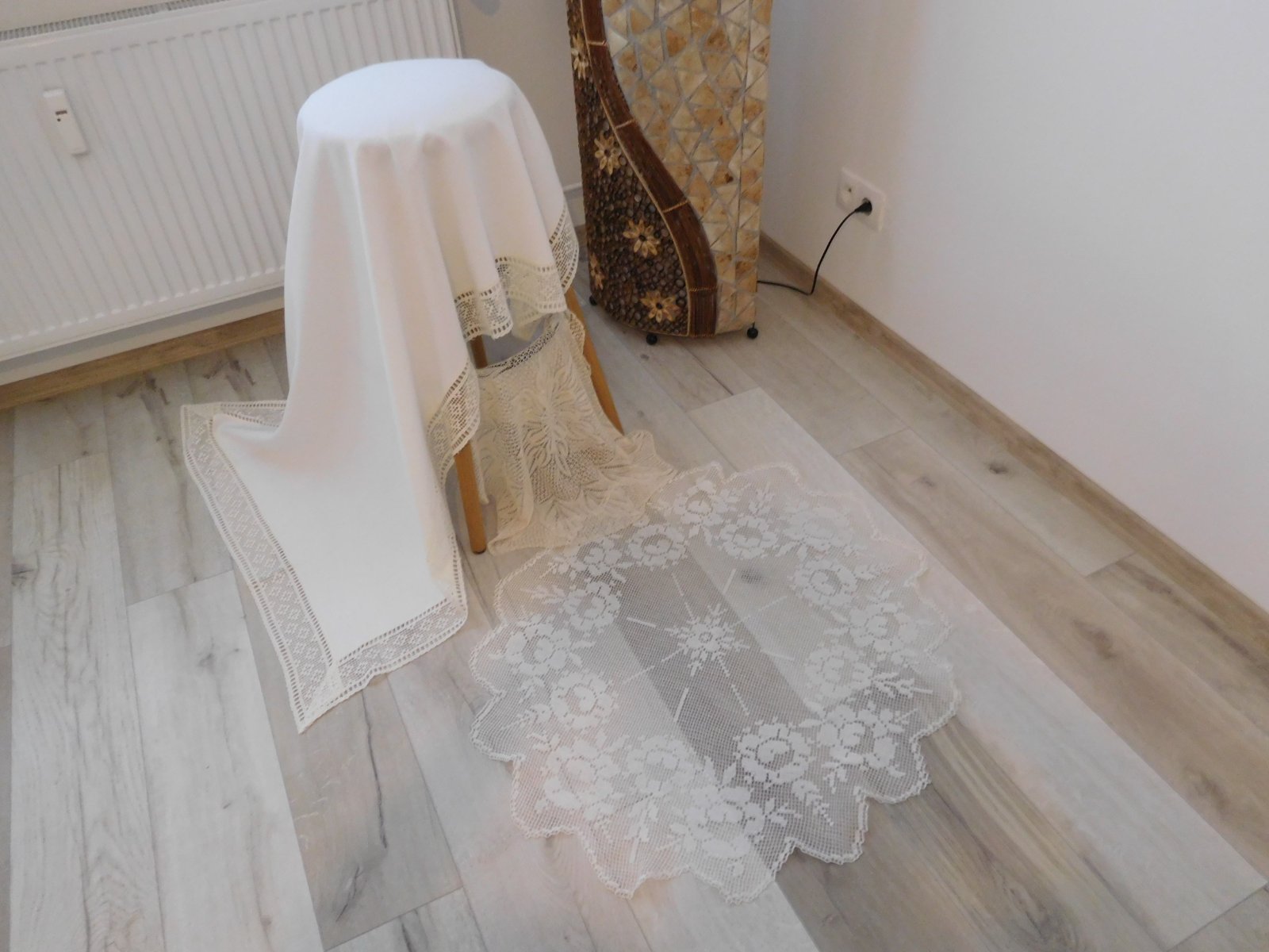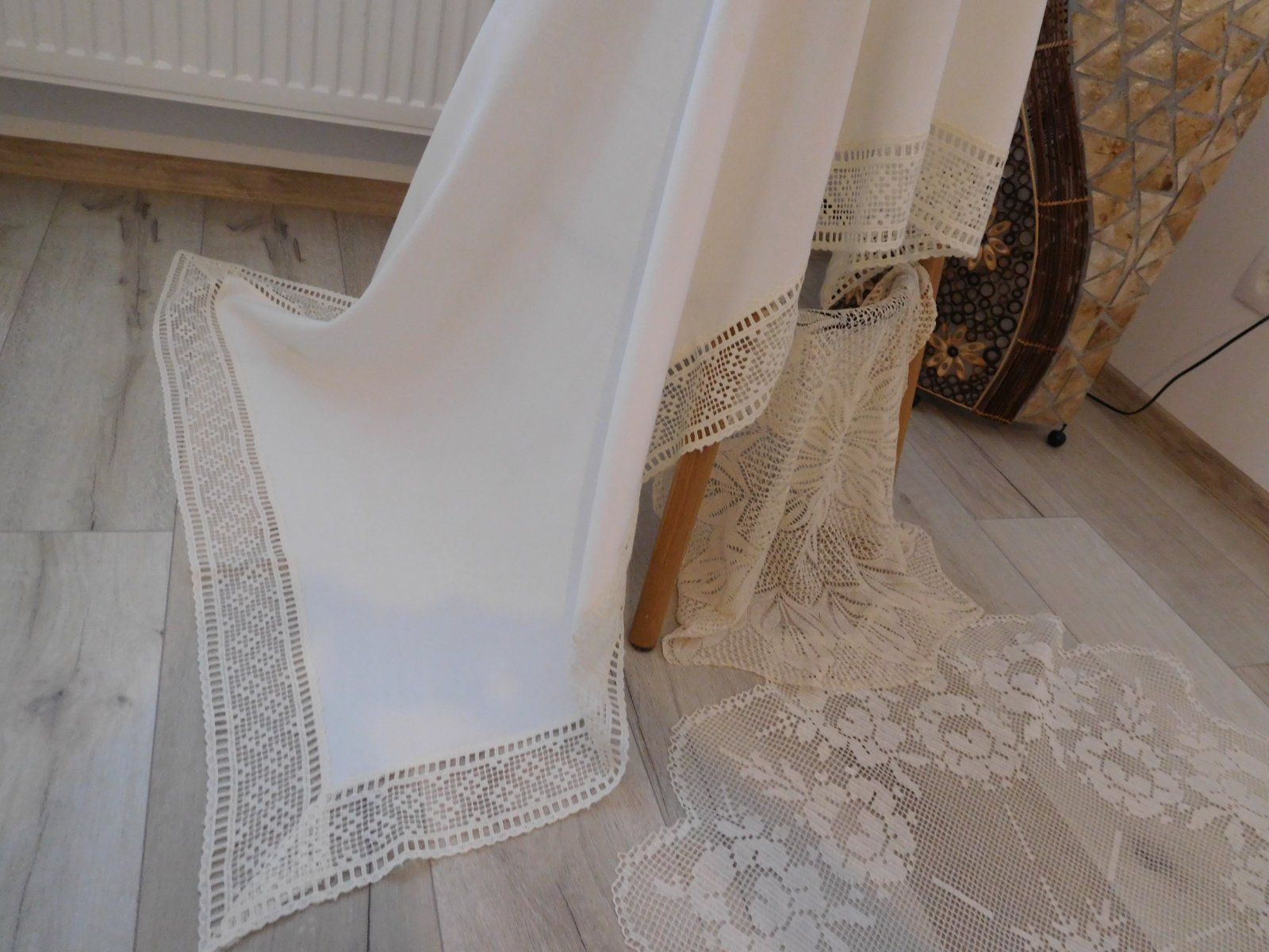 Biely obrus s krajkou + 2 x háčkovaná dečka