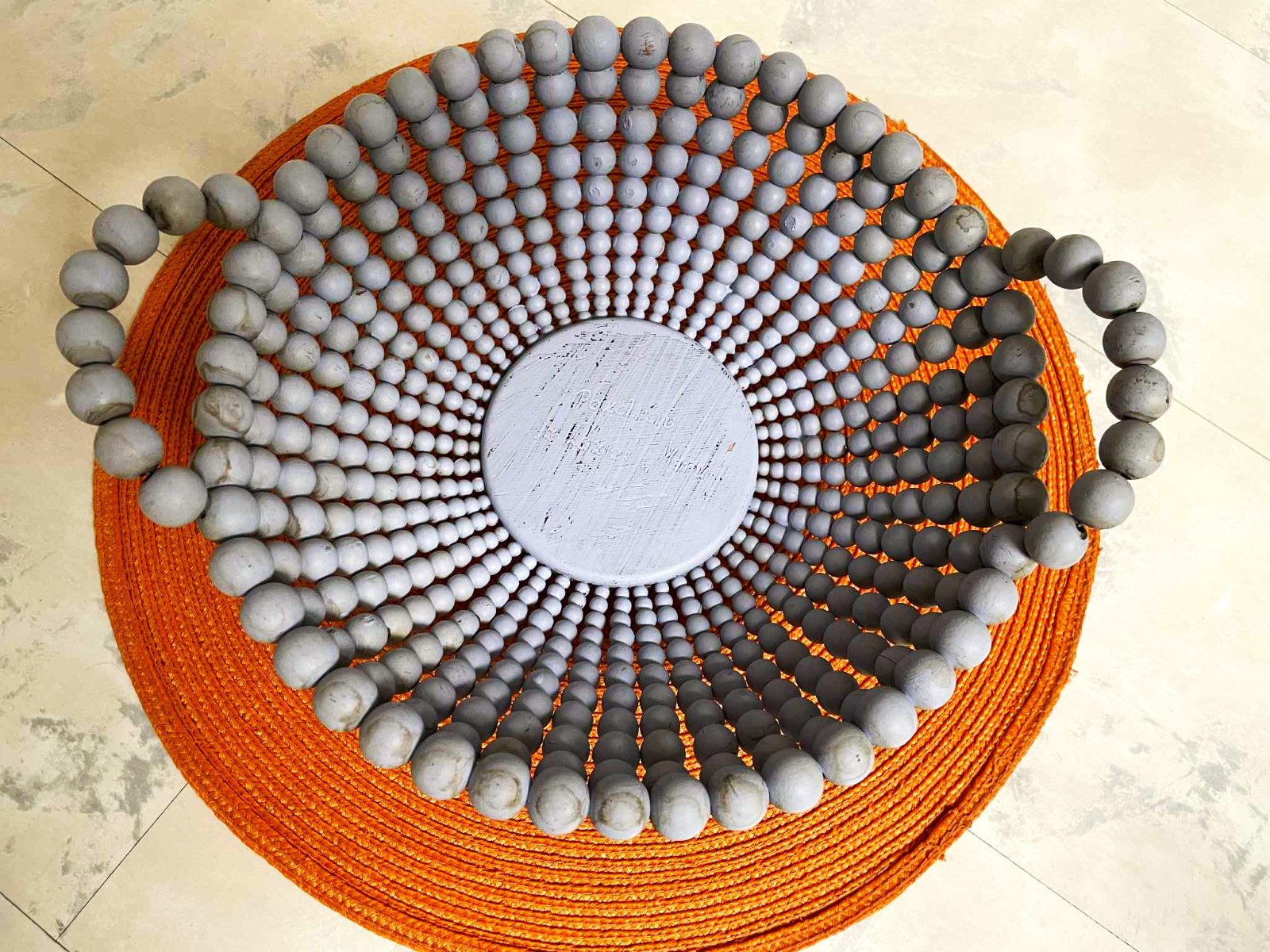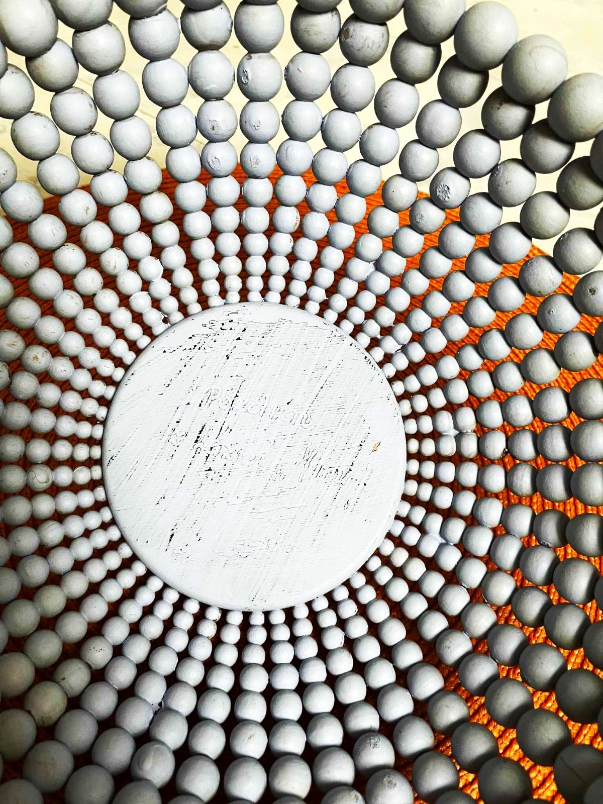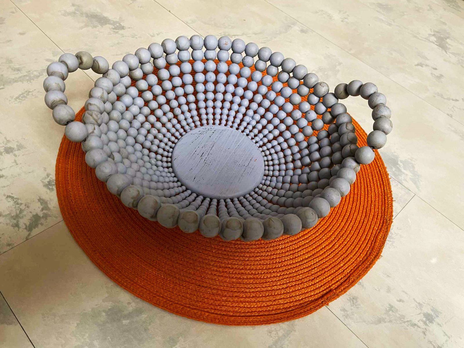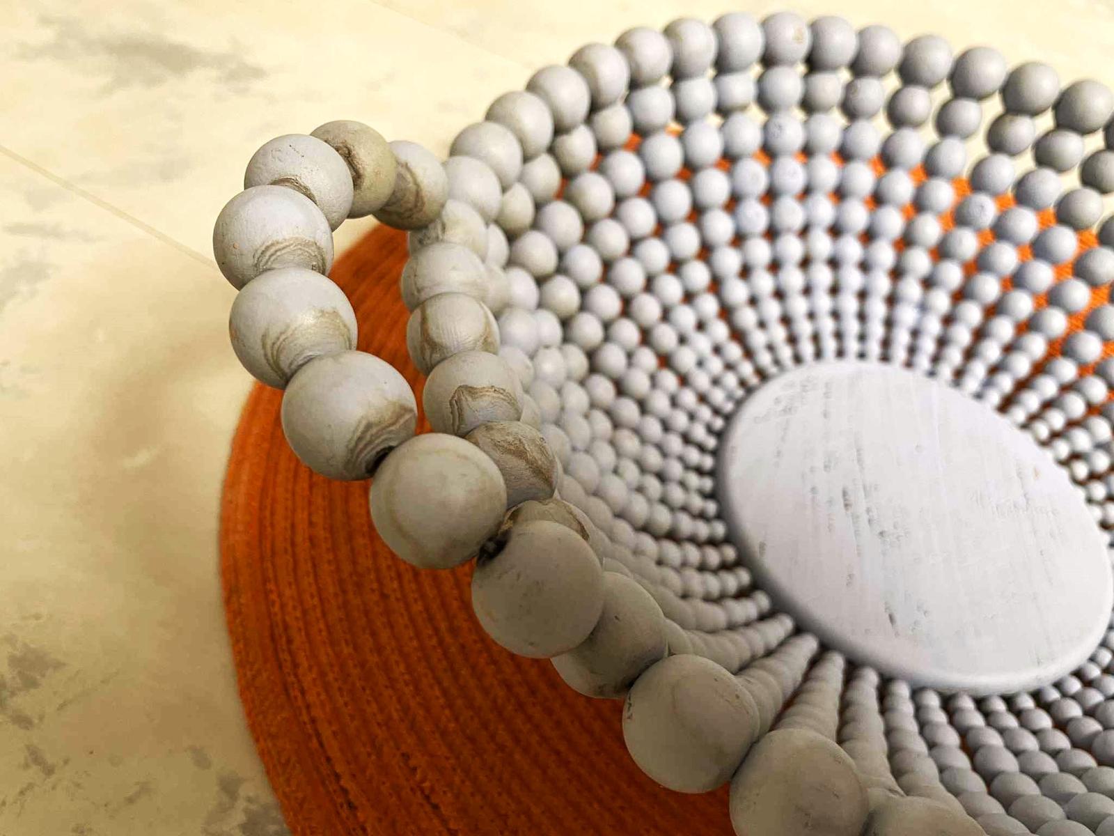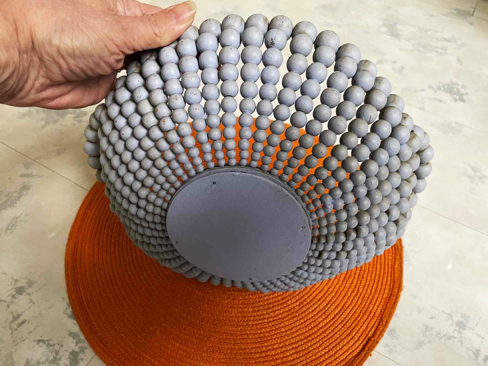starý drevený košík s uškami,z drevených guličiek,môžte si ho prešmyrglovať a nastriekať/namoriť podľa vlastného vkusu