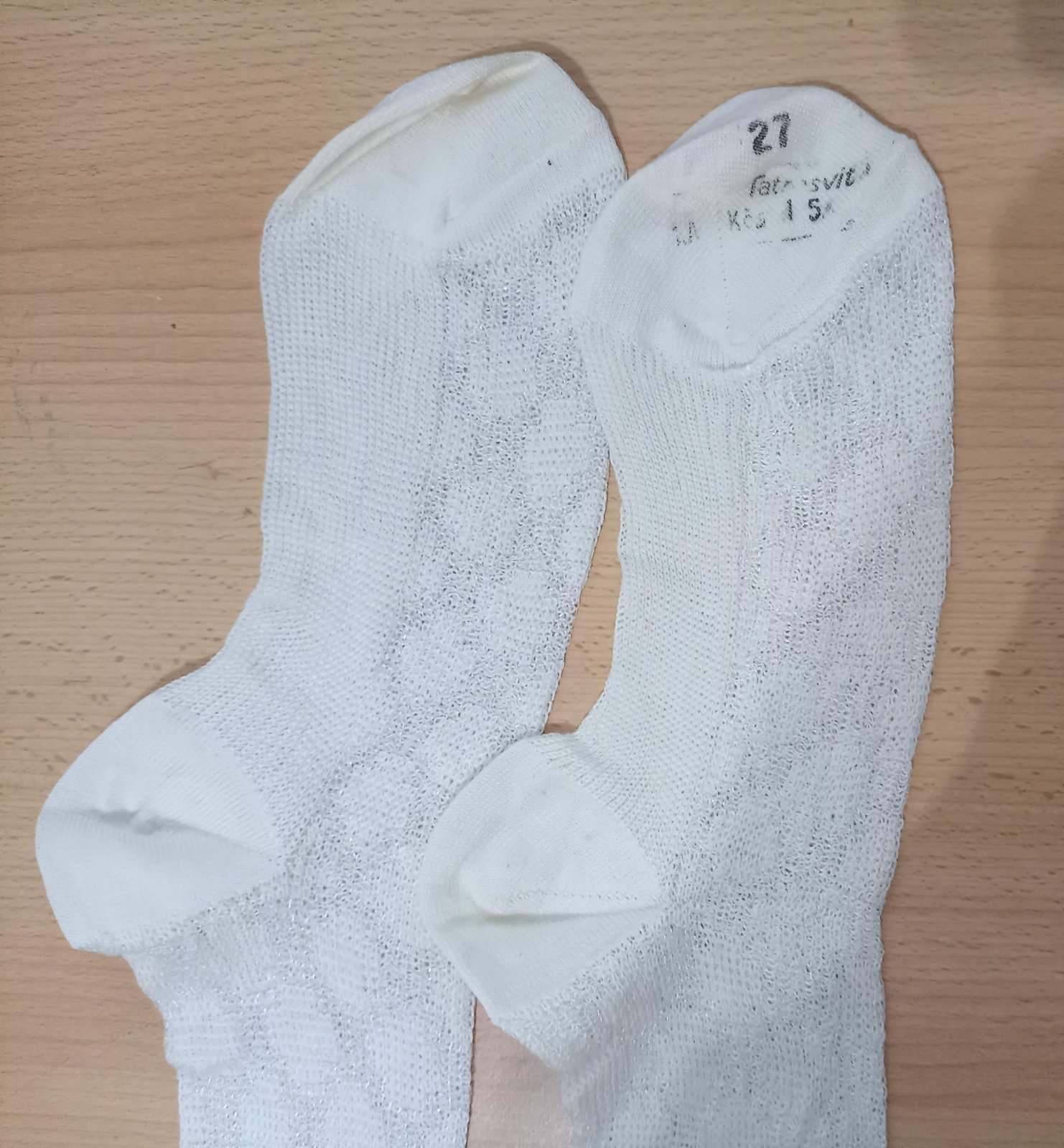 Retro ponožky ako zberateľský kúsok, s cenovkou v Kčs, výrobca Tatrasvit.