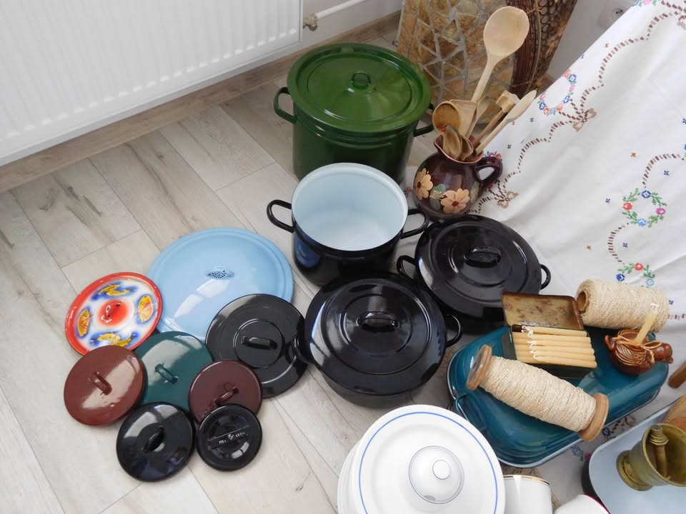 Ponúkam na predaj viď foto hrniec 3 x aj s pokrievkov+viac pokrievok na ďlšiu tvorbu na chalupu, dá sa to aj užívať no už nie sú veci najnovšie samozrejme, predaj spolu,
