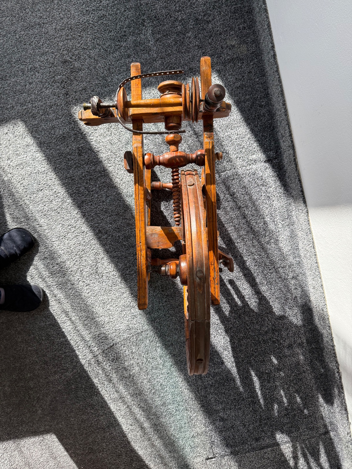 Starožitný udržiavaný krídlový kolovrat / kolovrátok, ktorý umožňoval súčasné skrúcanie vlákien a namotávanie hotovej priadze na cievku. Vyrobený z masívneho dreva. Posledné desaťročia slúžil už iba ako dekorácia. Stav vidieť na fotkách. Možný iba osobný odber, ideálne v Bratislave.