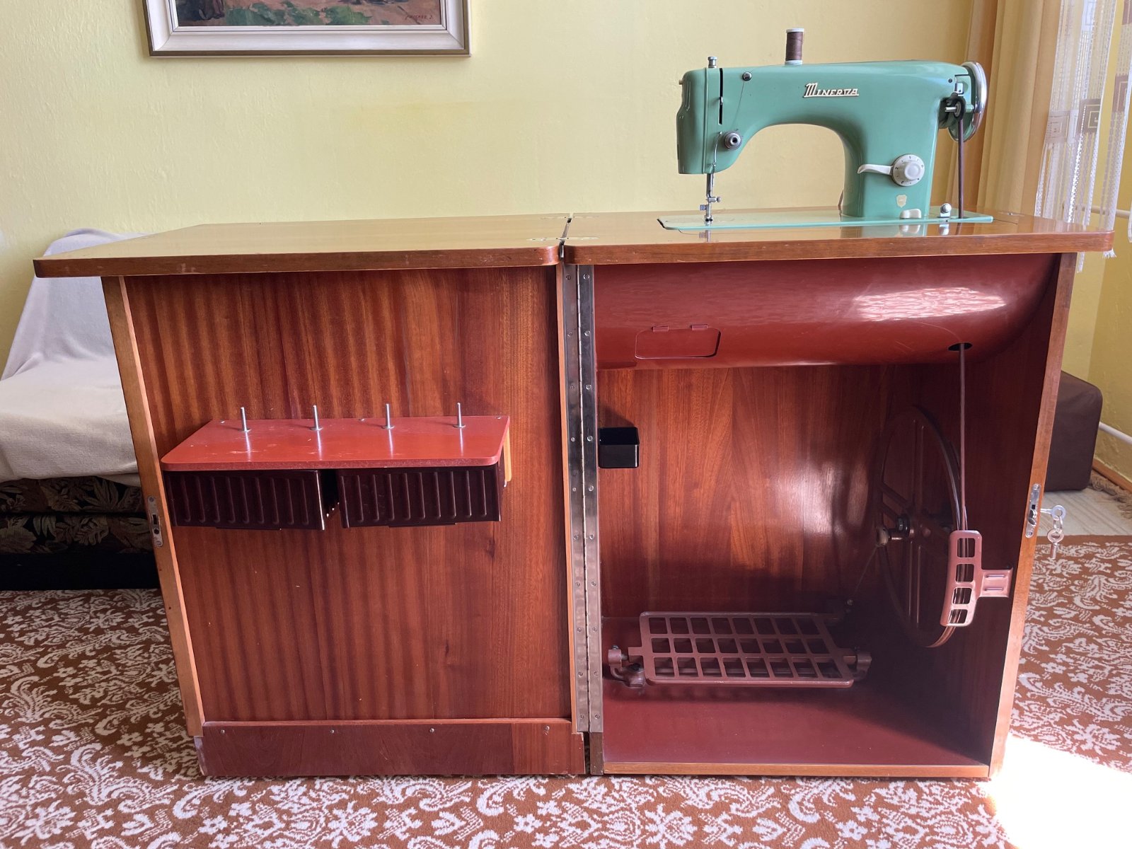 Predám funkčný šijací stroj Minerva, ktorý je zabudovaný v skrinke, ktorá sa dá rozložiť. V zloženom stave sú rozmery: š x h x v... 62,5 x 48 x 81 cm. Cena 39 €. Stroj je šlapací, českej výroby. Stroj je v Prešove na sídlisku III. Iba osobný odber.