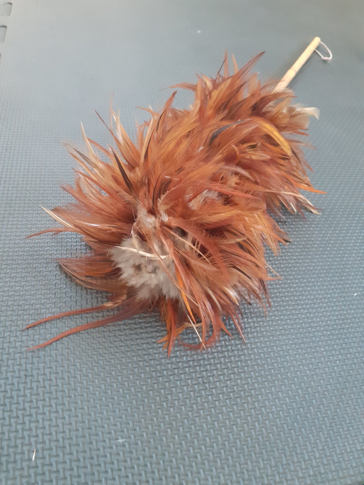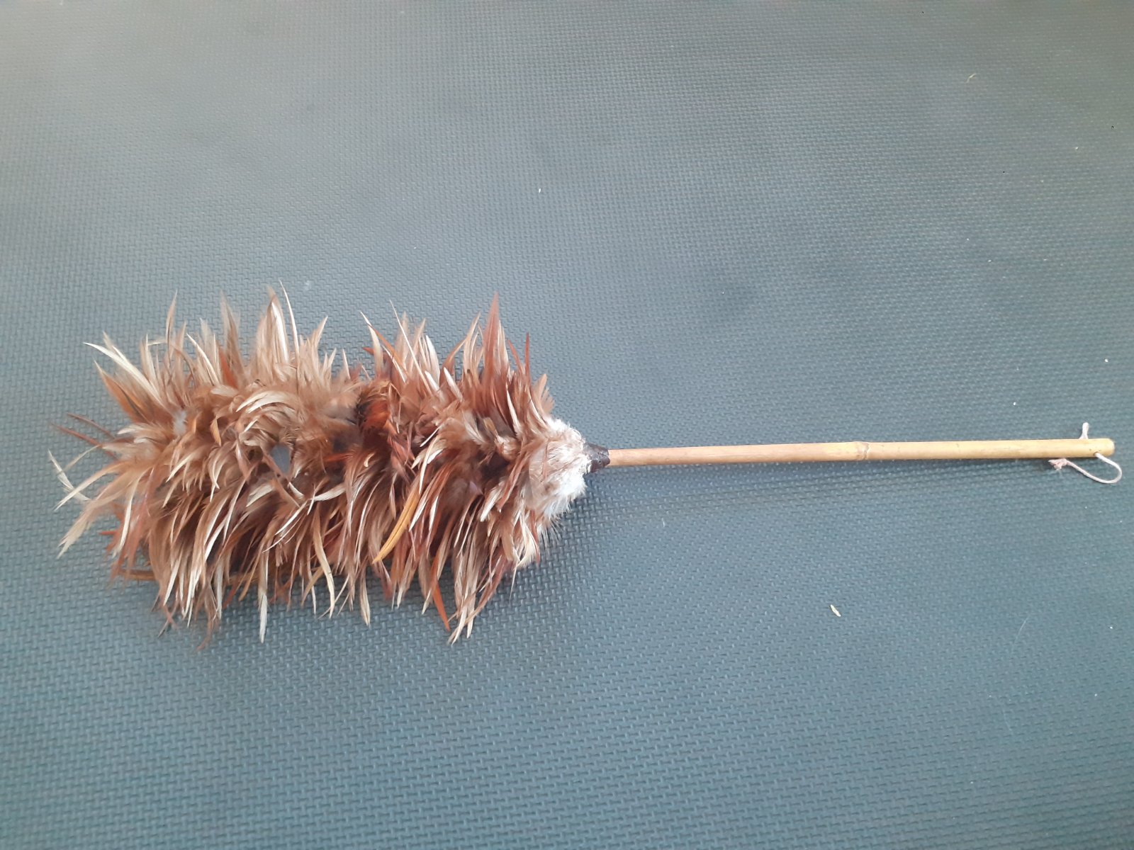 Predám starú zachovalú prachovku zo slepačieho peria na utieranie prachu v byte / dome. Má bambusovú tyč na uchopenie, ktorá sa dá zavesiť a na nej je pomocou nejakého vosku alebo tmelu prichytené slepačie perie hnedej škoricovej farby. Celková dĺžka 60 cm.