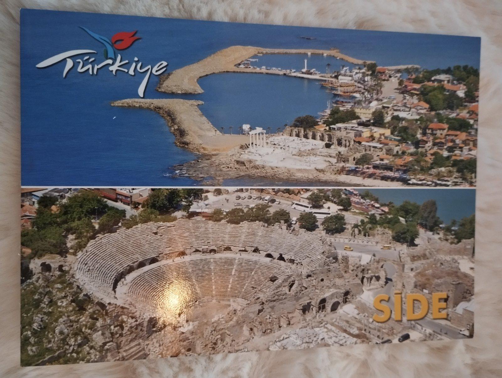 Pohľadnica Side Turecko v peknom stave. Poštovné Slovenskou poštou od 1,20€, prípadne osobný odber Zvolen, Banská Bystrica.