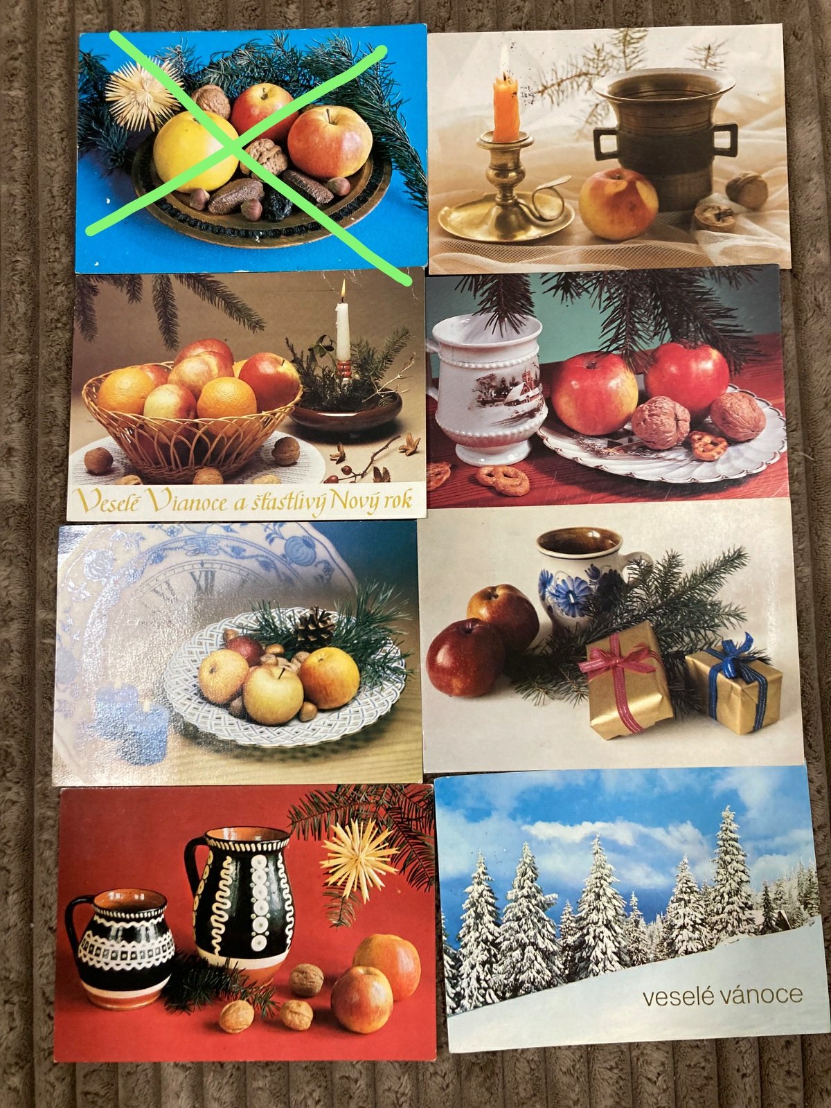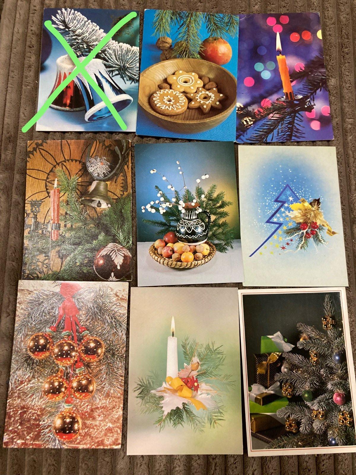 Staré Vianočné pohľadnice 80-90roky, veľmi pekný stav, vzadu so známkou (Československo) a popísané