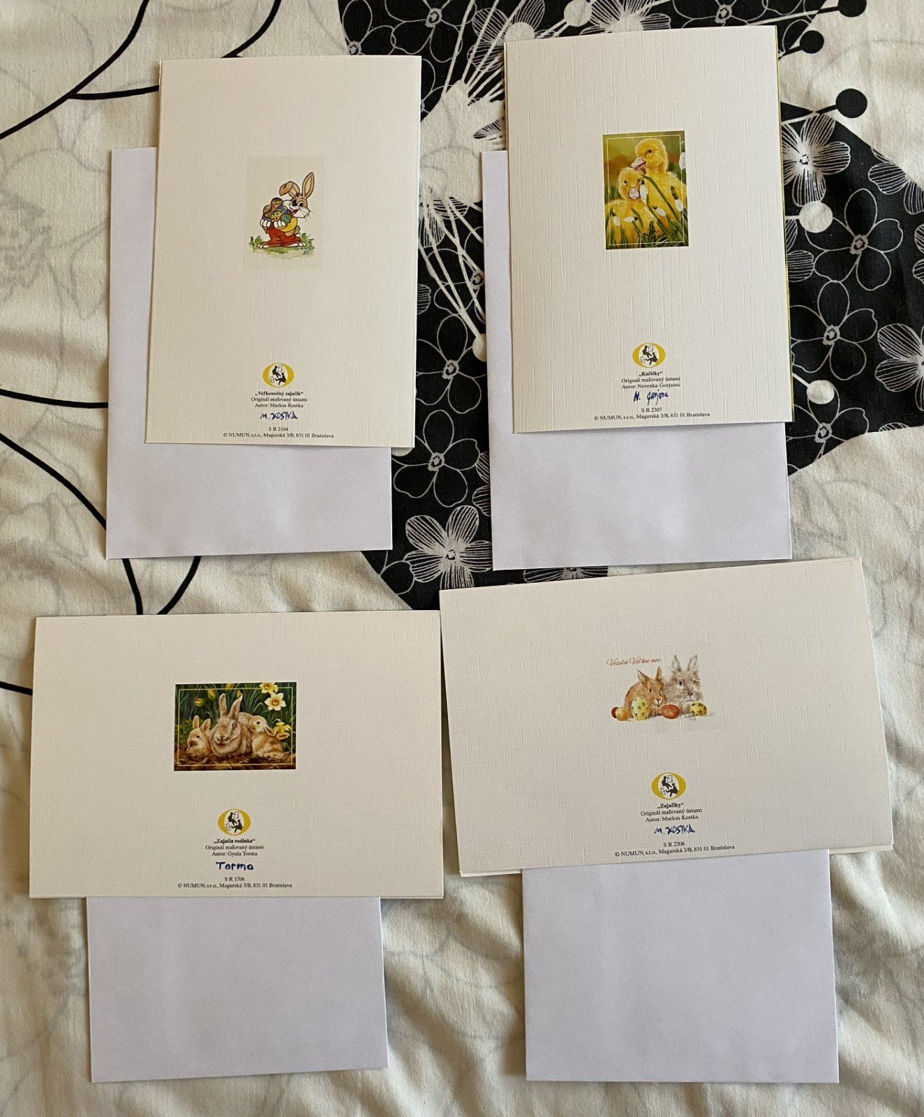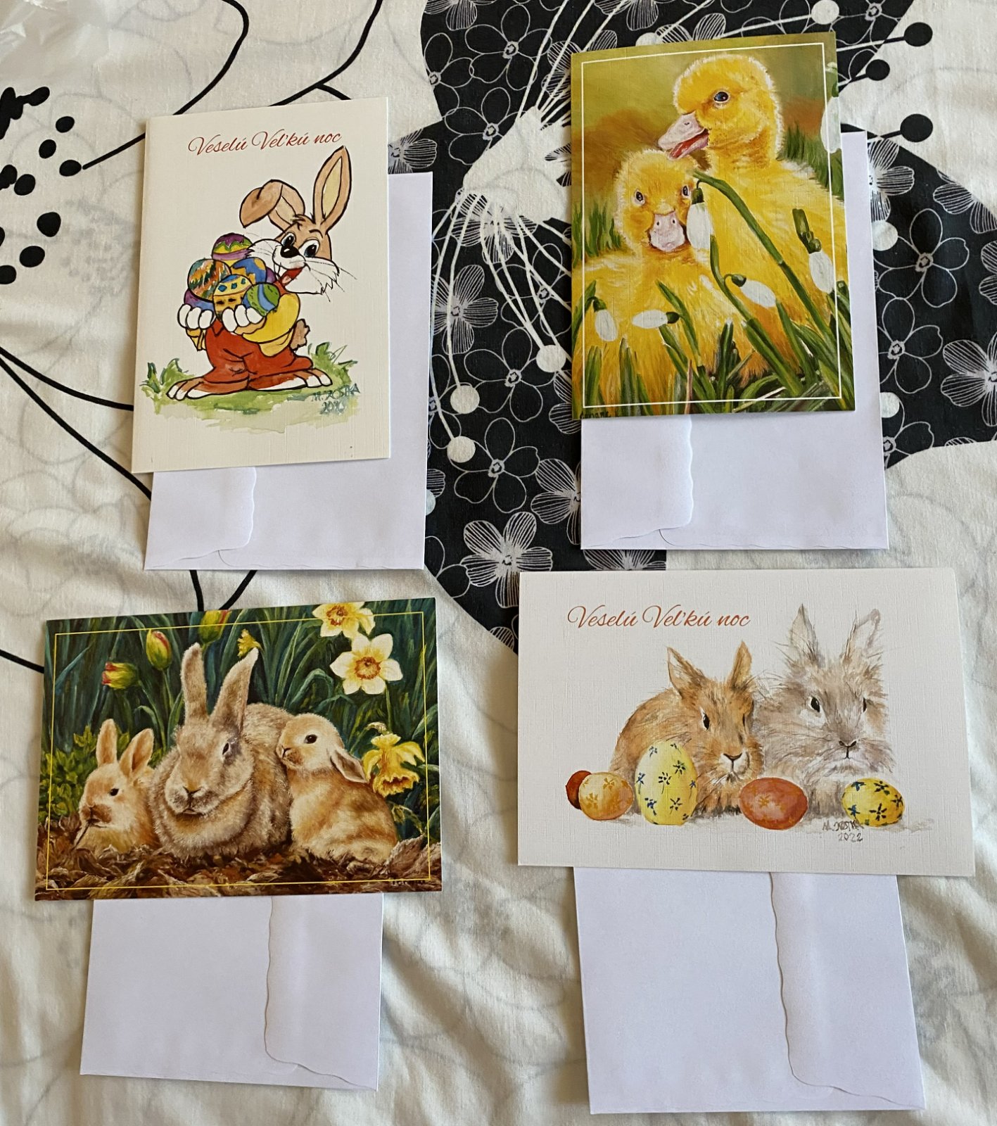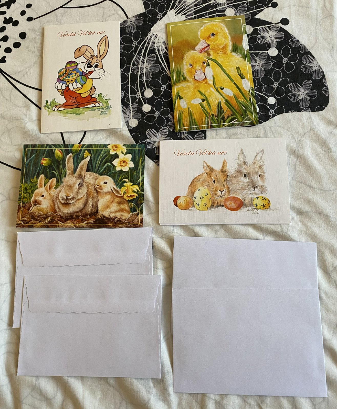 Pohľadnice s obálkou - Veľká noc, jar - zajkovia