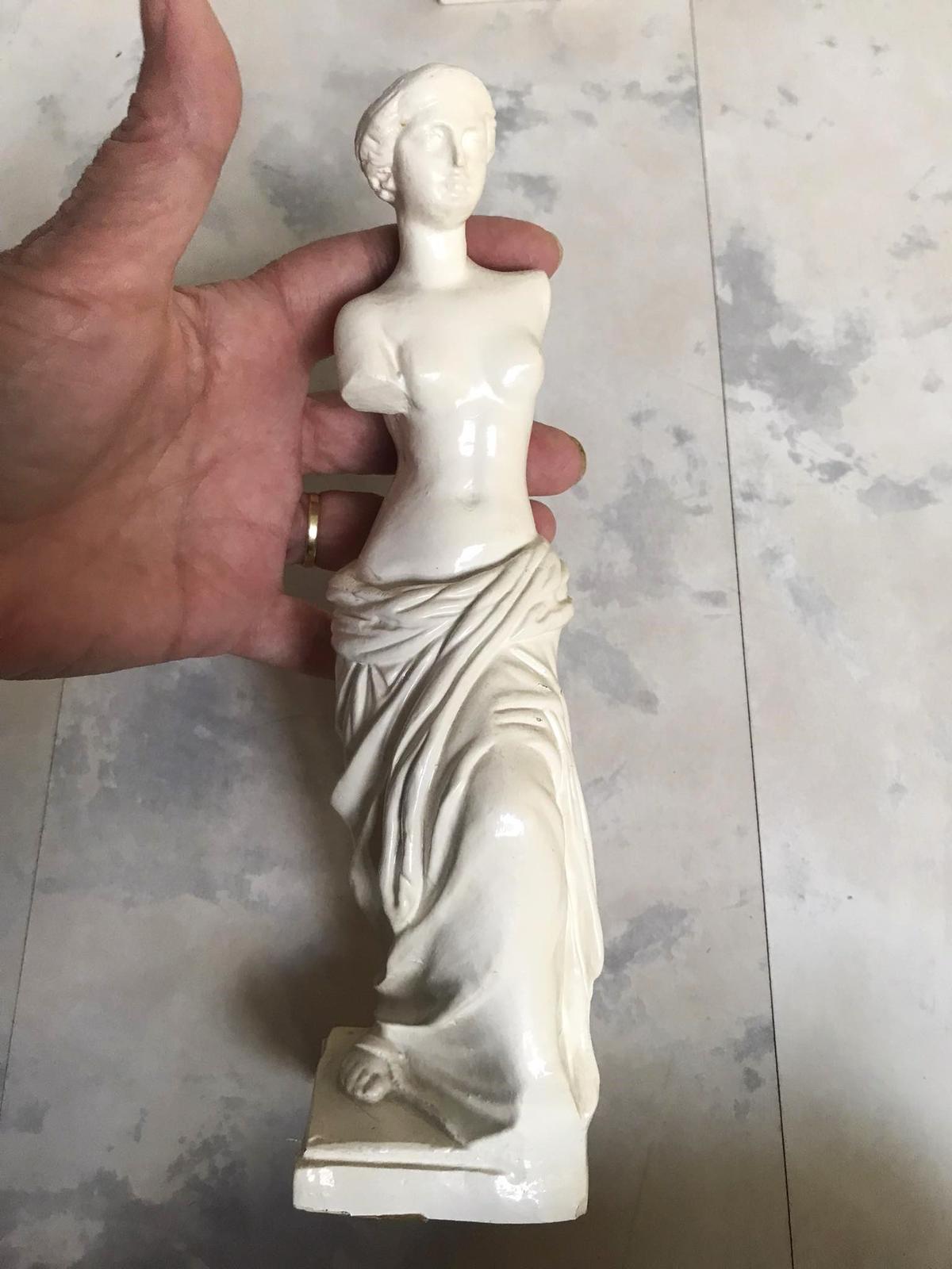 krásna antická socha z gréckej mytológie - bohyňa Venuša ,bola iba vystavená,materiál neviem identifikovať,ale nie je to sádra, cena je za 1 ks,2 rôzne druhy,výška 26 /24 cm