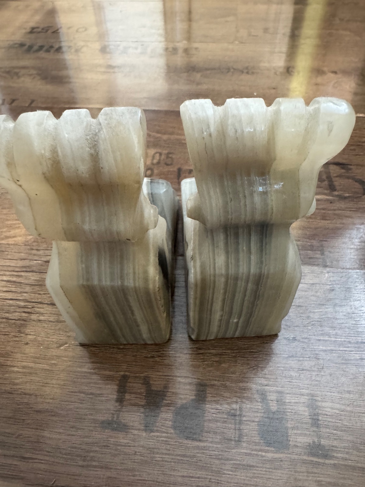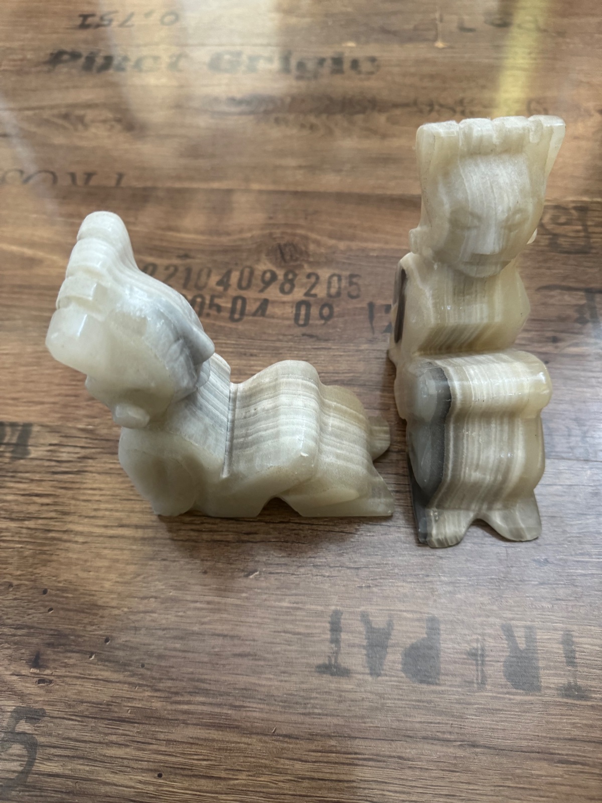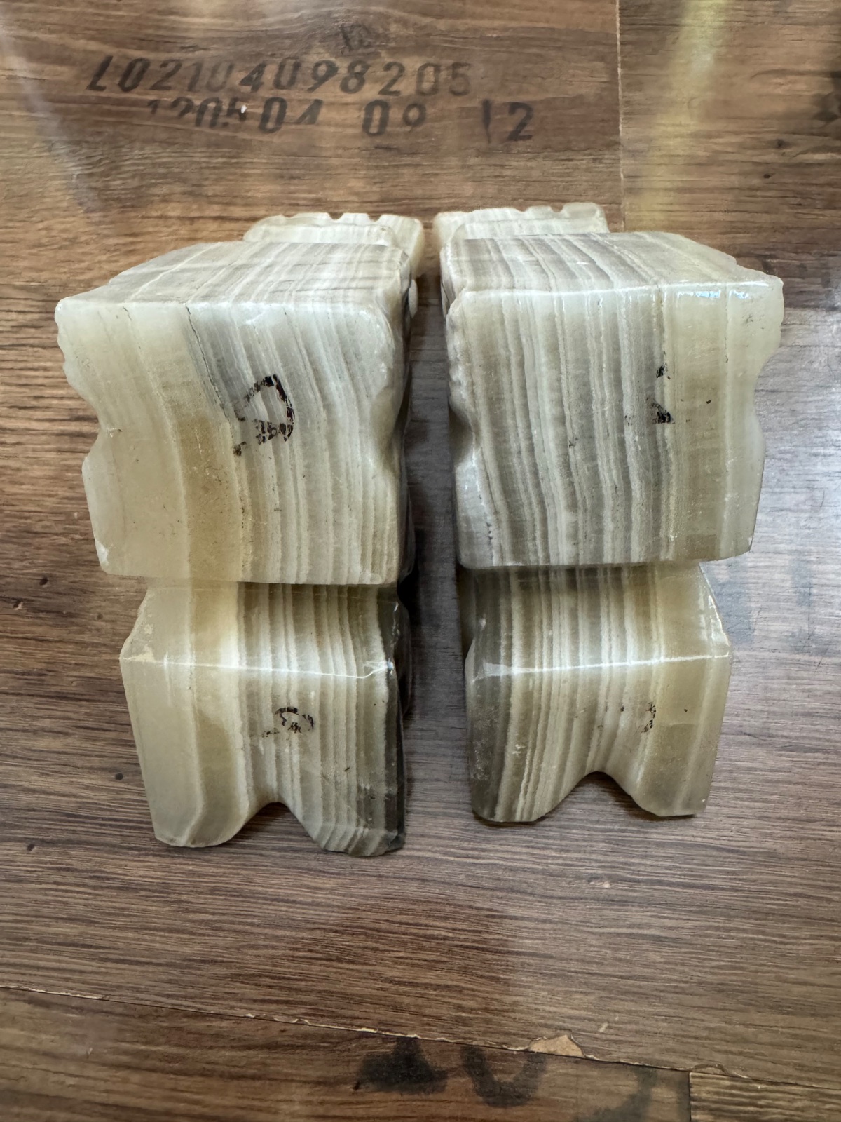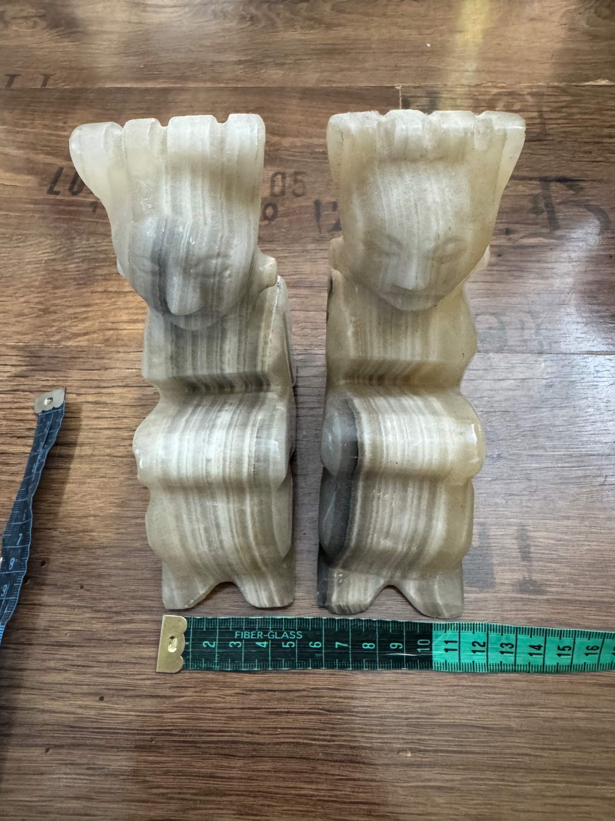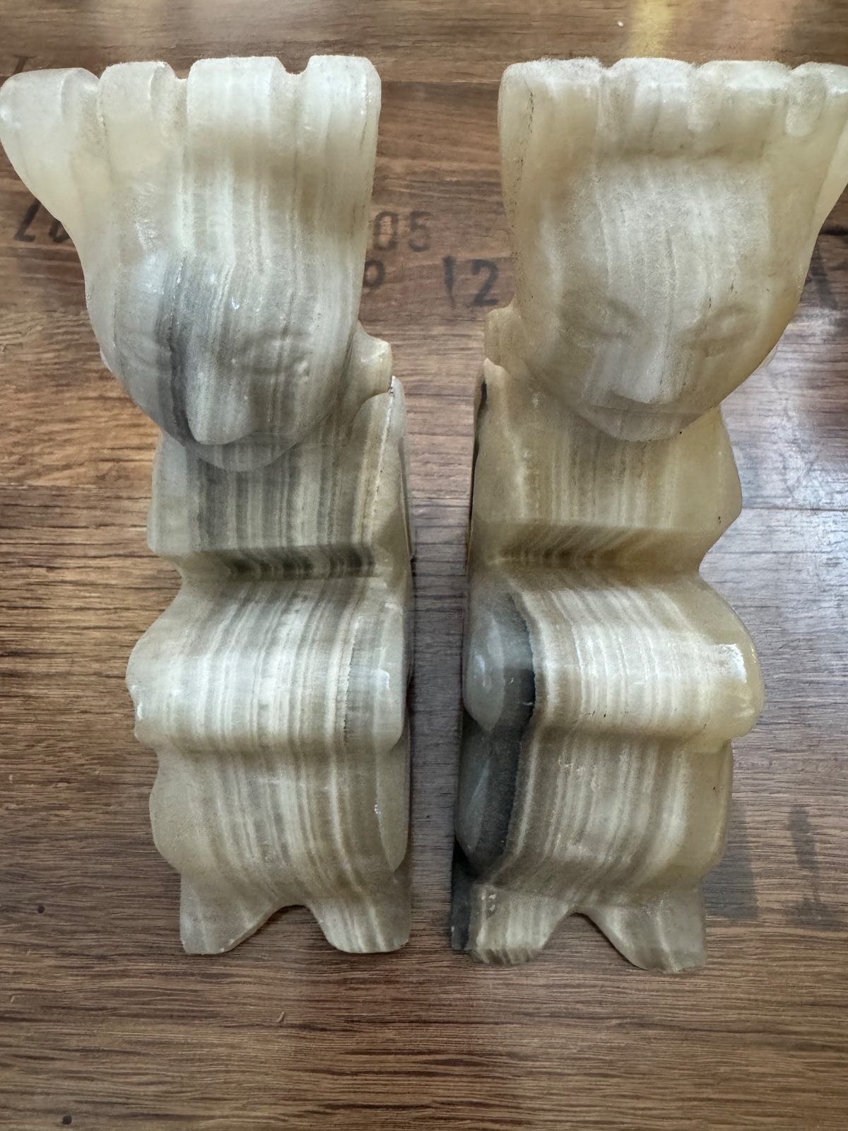 Ponúkam 2ks - pár mramorových zarážok / držiakov na knihy z onyxu a už majú svoj vek. Znazorňujú pravdepodobne nejaké aztécke postavičky. Sú naďalej v peknom stave viď. foto. Cena za oba kusy spolu. Poštovné podľa taríf.