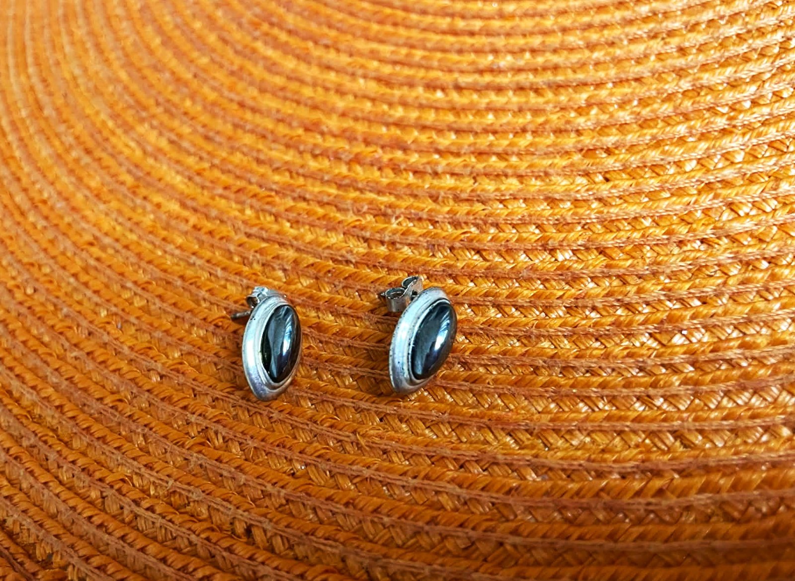 krásne nepoškodené staré náušnice,nádherné vypuklé očká - šedá perleť - metalíza ukotvené v striebornom ráme,dlžka = 1,3 cm,dajú sa nosiť kolmo alebo vodorovne,nie je na nich žiadne značenie