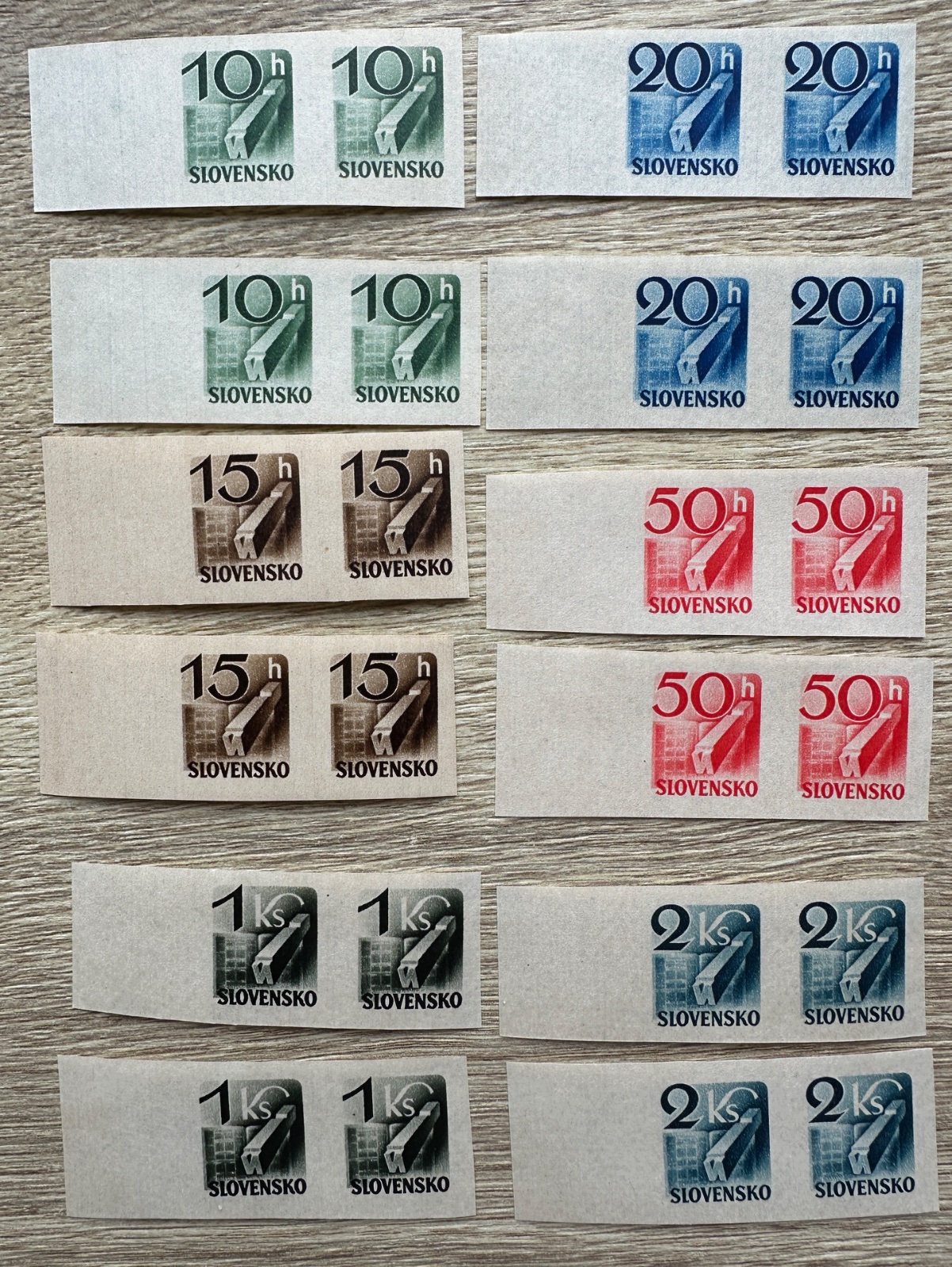 ☘️❤️Predám novinové známky Slovenského štátu s hodnotami 10 h, 15 h, 20 h, 50 h, 1 Ks a 2 Ks, teda emisie z rokov 1939–1940. Nikdy nelepene, čistý lep, nepečiatkované. Naľavo.