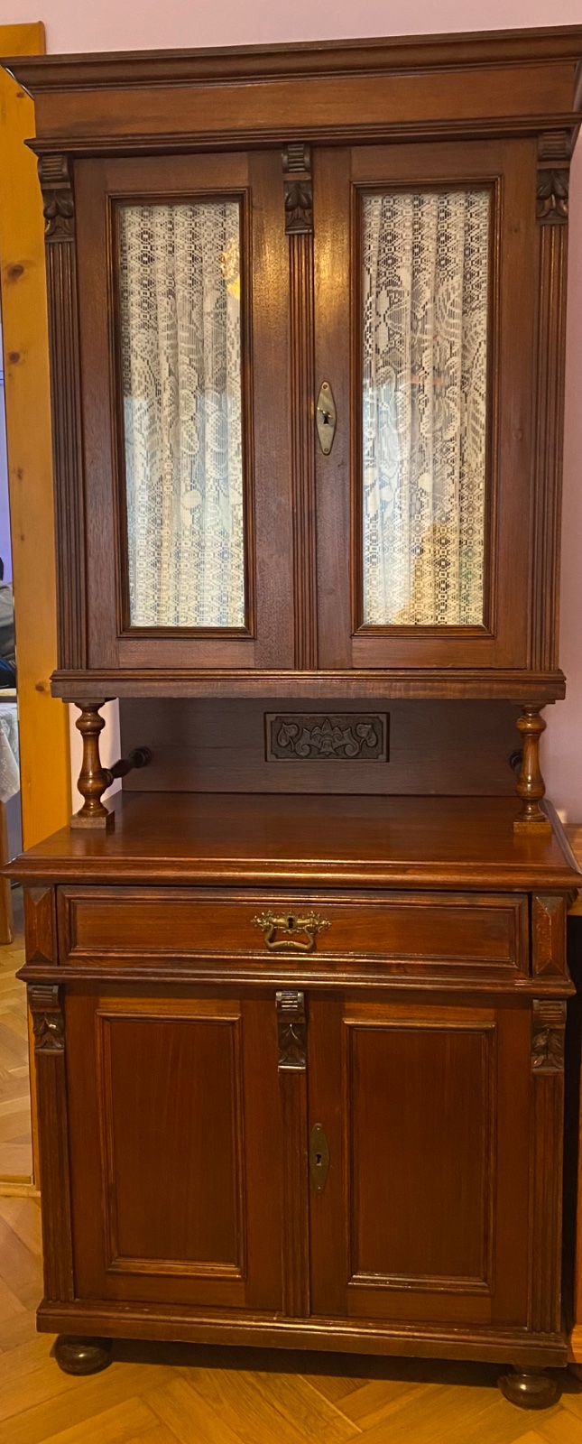Predám krásny zachovalý a zrepasovaný kredenec. Je v peknom pôvodnom stave. Pri sťahovaní sa, žiaľ, na jednej bočnej hrane odrel, drevo je poškodené. Zároveň na dvierkach som spolu s lepiacou pásko...