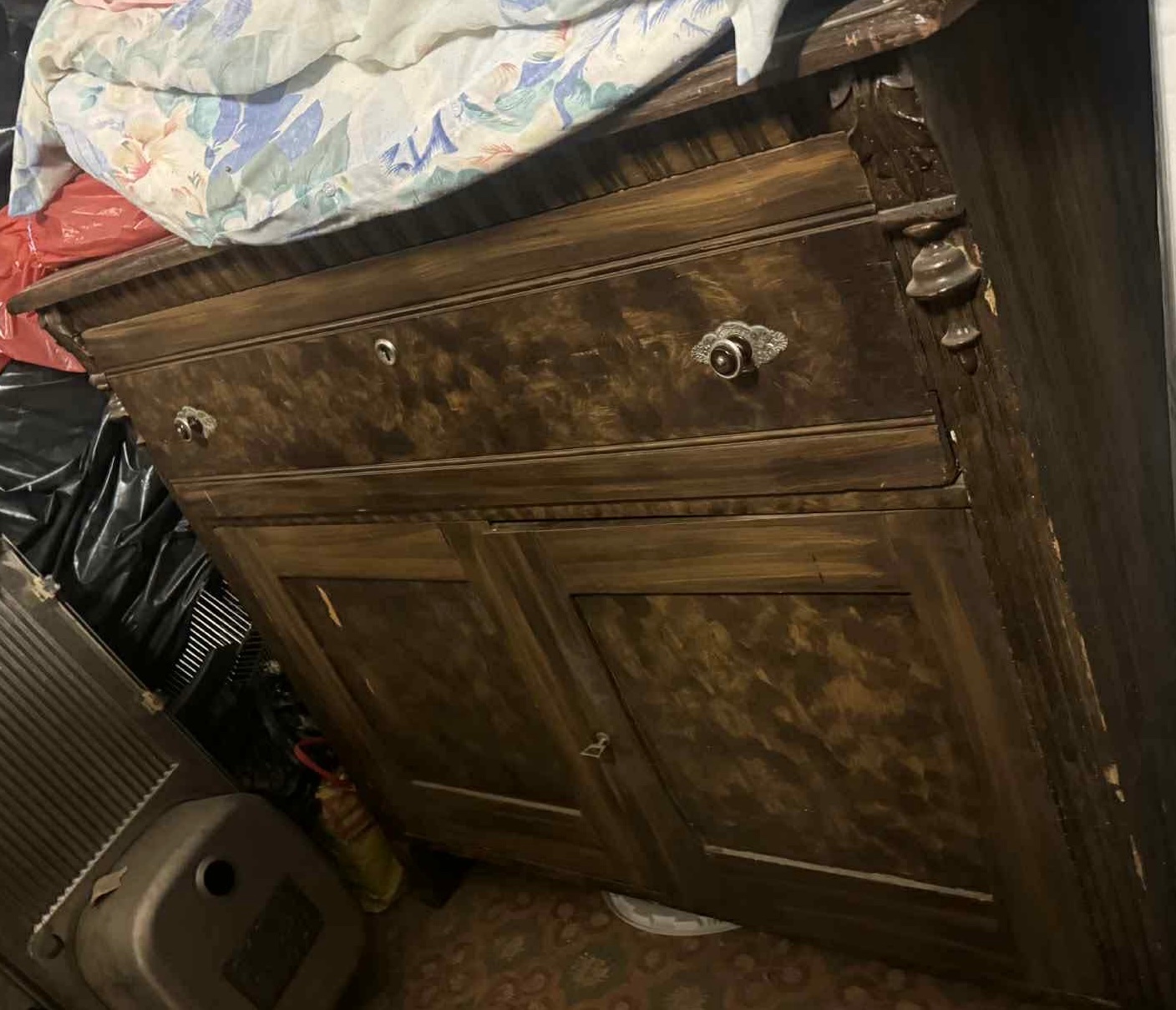 Predám staršiu masívnu drevenú skrinku/komodu. Pôvodný kus nábytku, vhodný na renováciu alebo na chalupu.