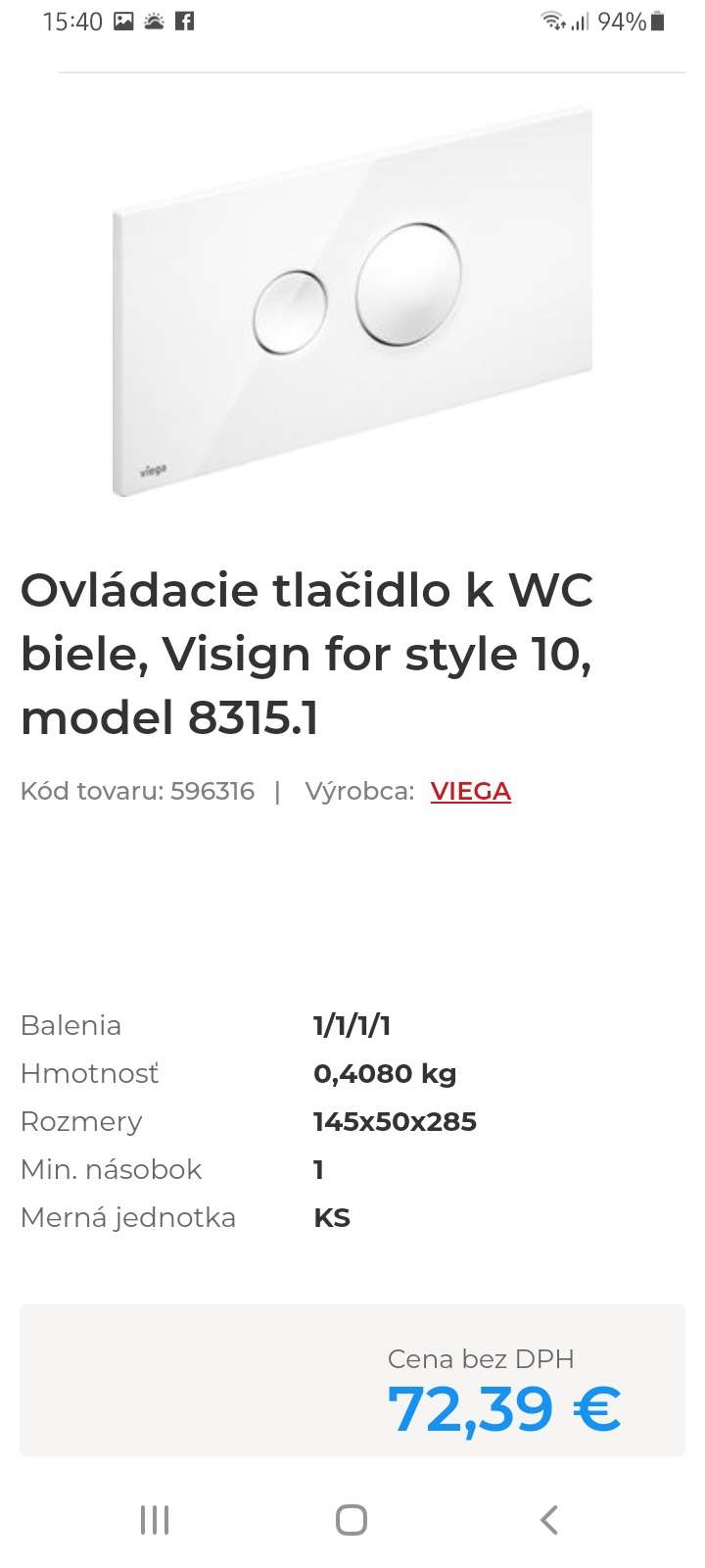 Ovládacie tlačidlo k WC biele, Visign for style 10, model 8315.1