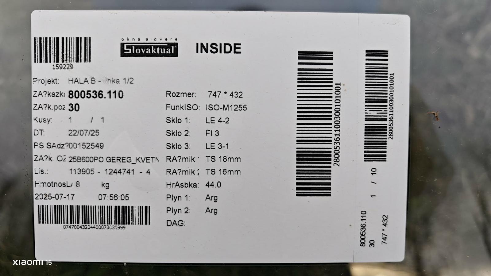 Stavebný otvor-950x640mm.Komunikacia mailom.
