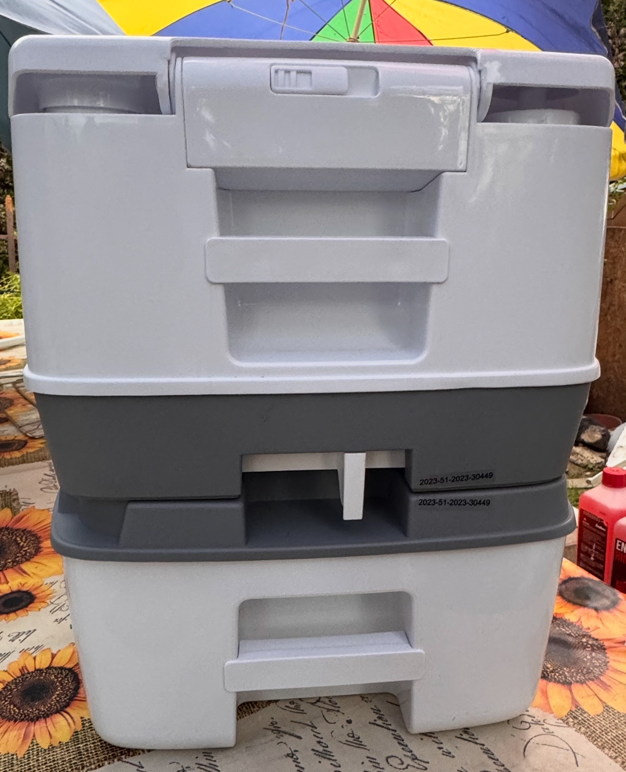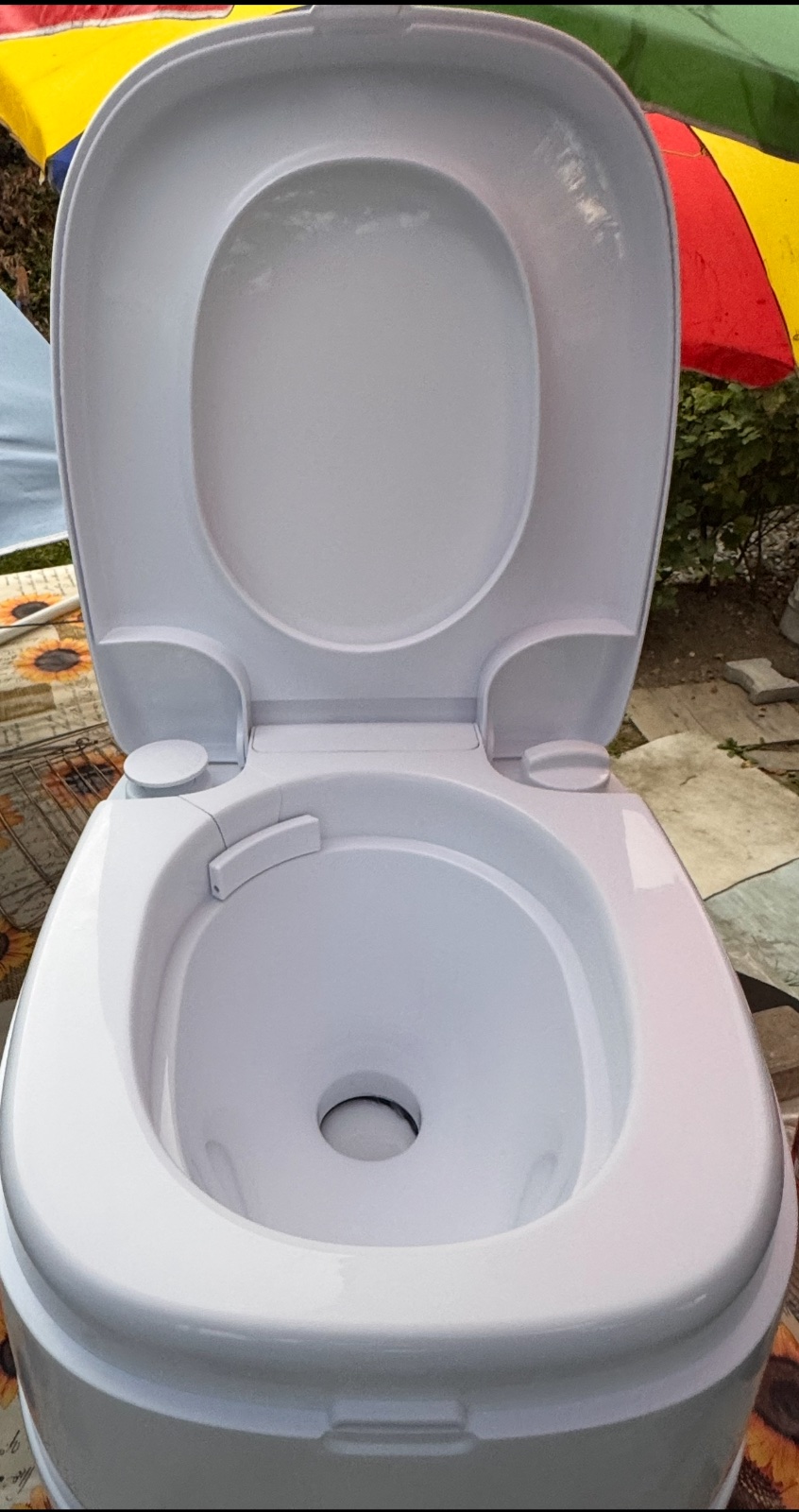 prenosna toaleta/wc + modra tekutina 1L (zadarmo) + červena tekutina 3 L (zadarmo)
