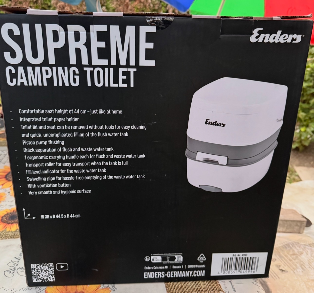 Predam NOVÚ A NEPOUŽITÚ prenosnú kempingovú toaletu/ wc, zn. Enders Supreme, 38 x H 44,5 x V 44 cm.