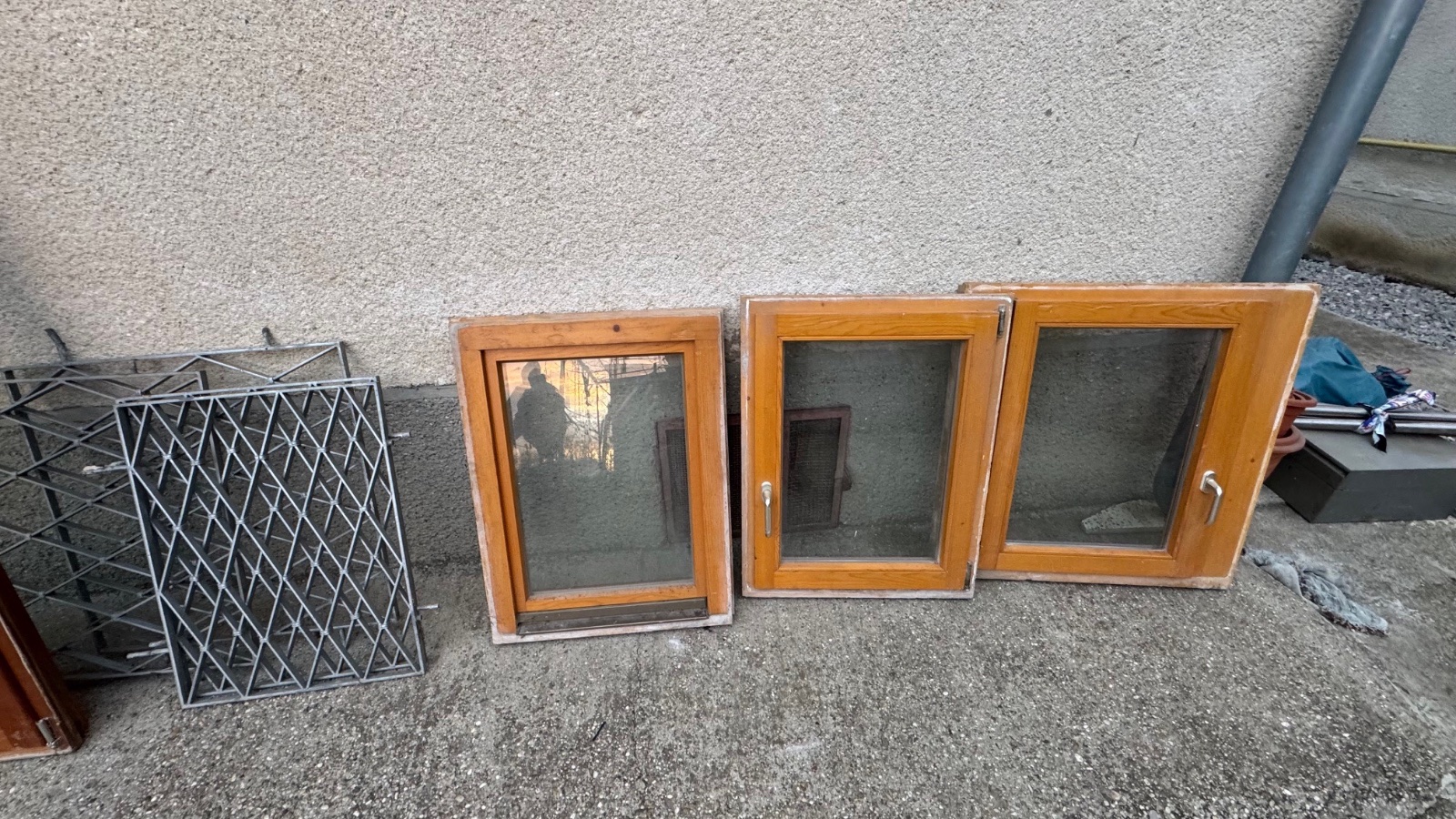 Predám 3 kusy euro okna po demontáži v rozmeroch 700 x 800 mm, (plus mreže pozinkované 800 x 800-2 kusy, 600 krát 800-2kusy).
