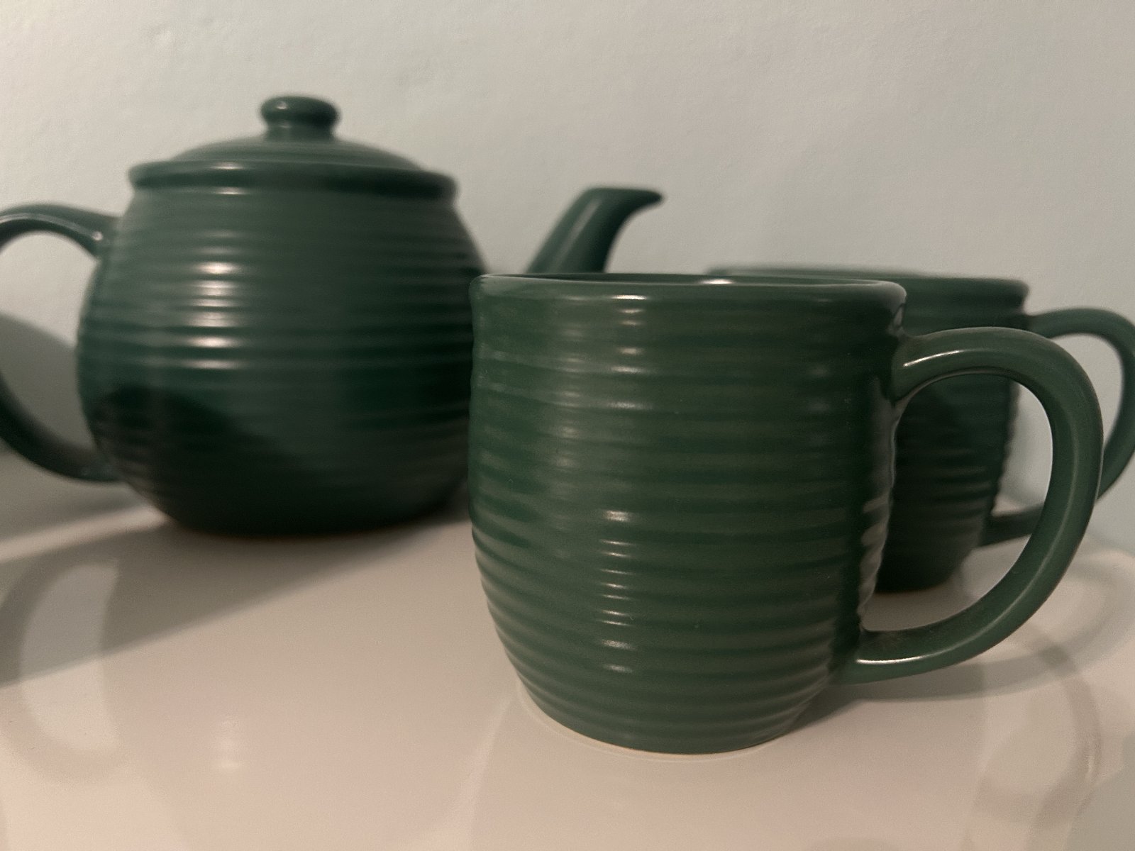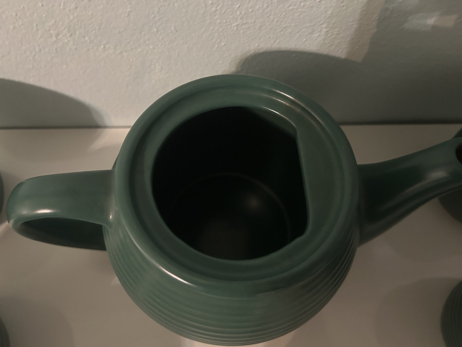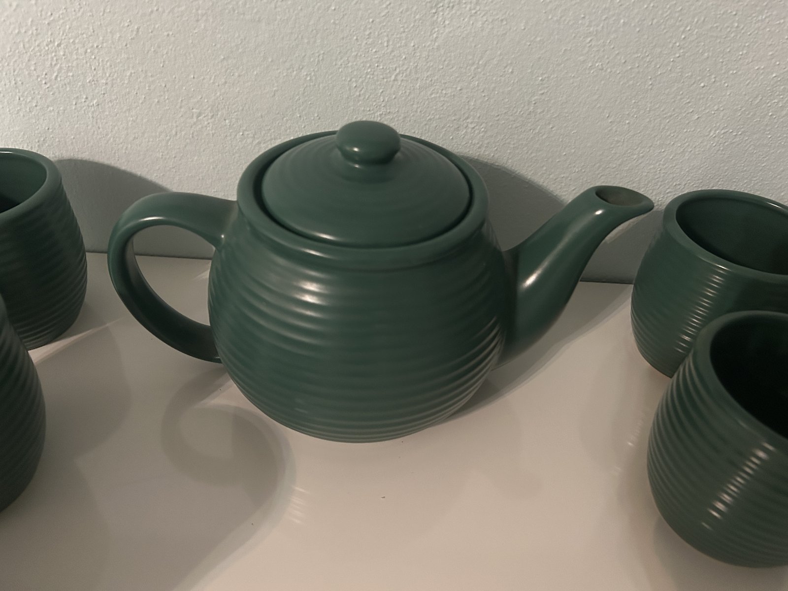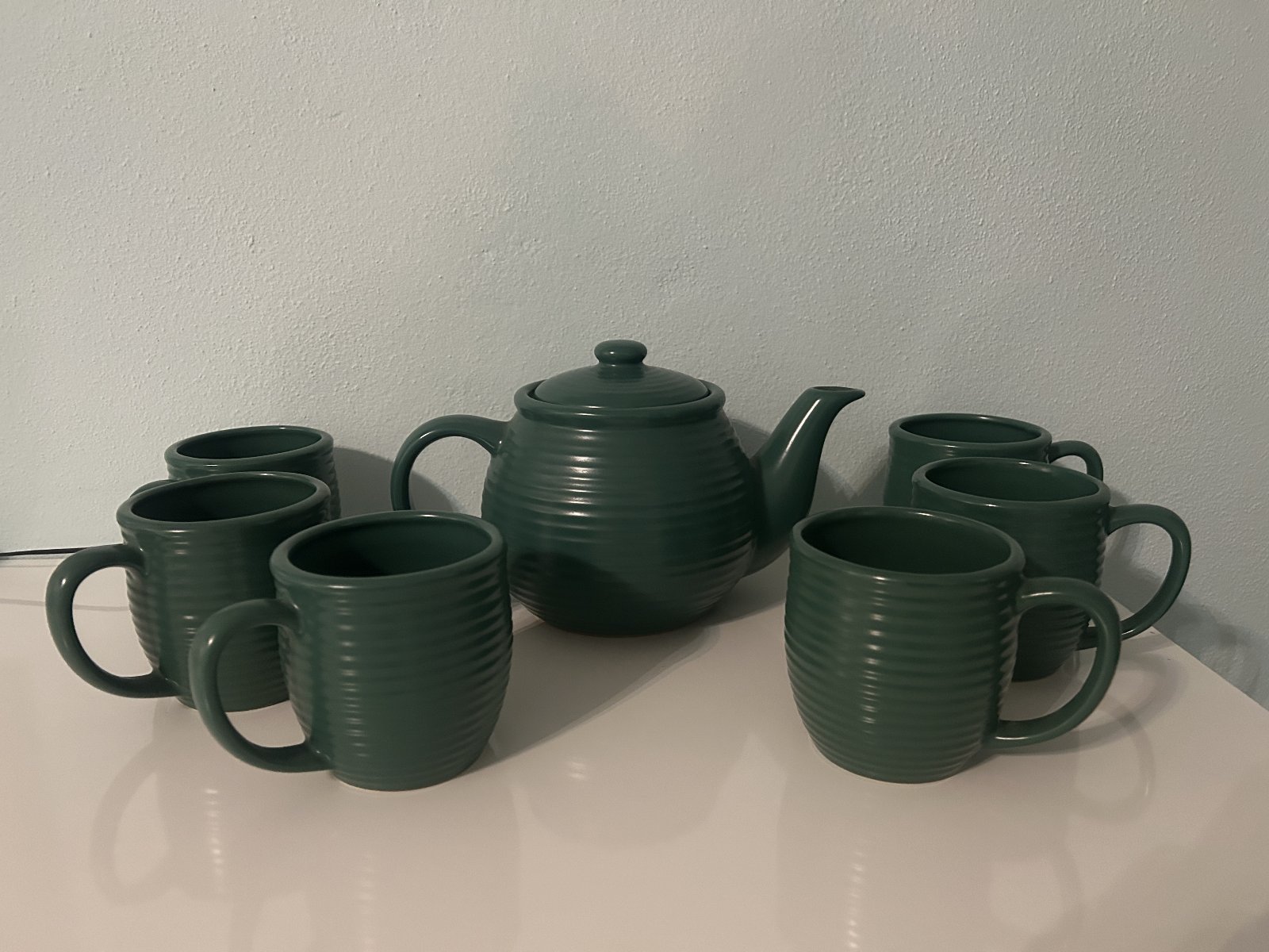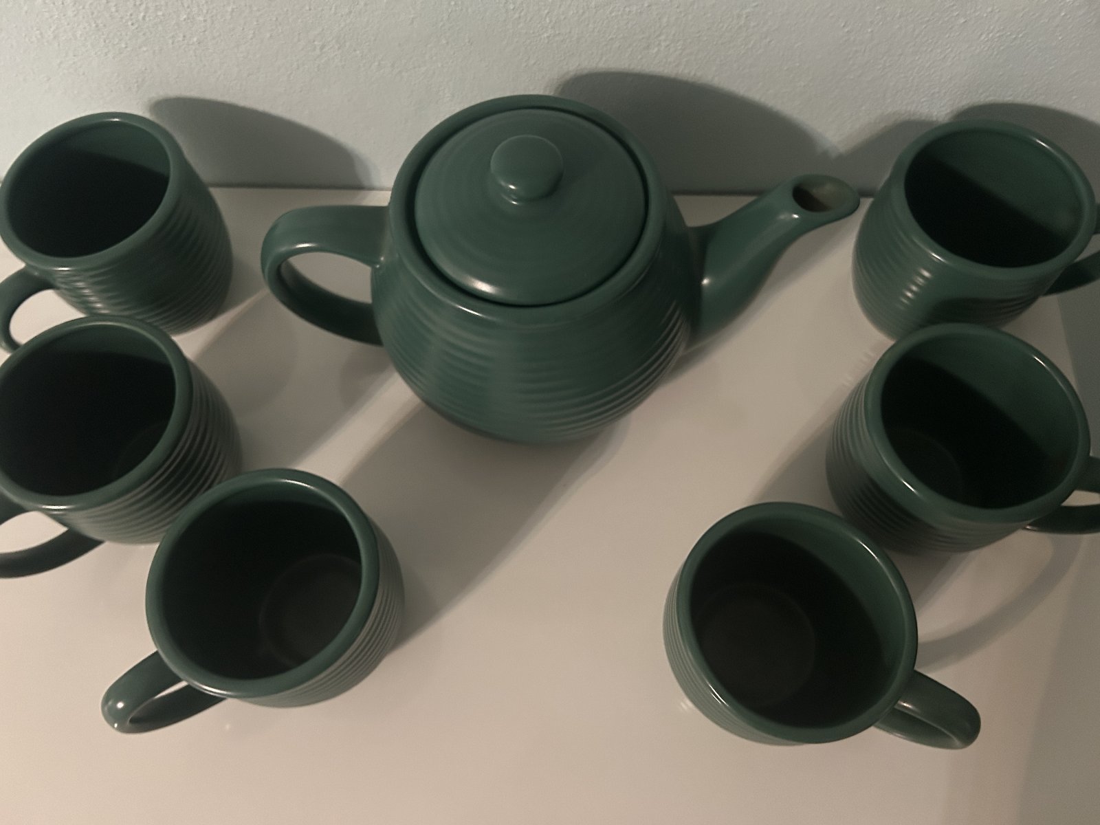 tmavozelenej farby, nepoužívaná, iba vystavená. Nádoba na čaj alebo kávu a 6 šáliek