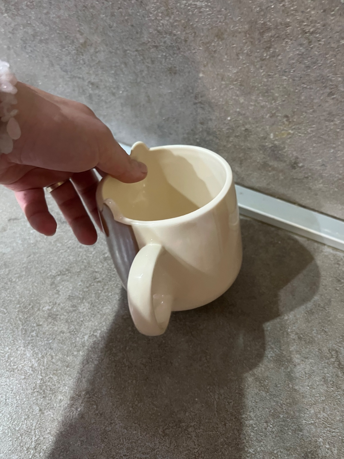 min.používané,masívne,objem pol litra,farba béžovobiela do šeda - slonia kosť,výška = 10 cm, spodný priemer = 8 cm,