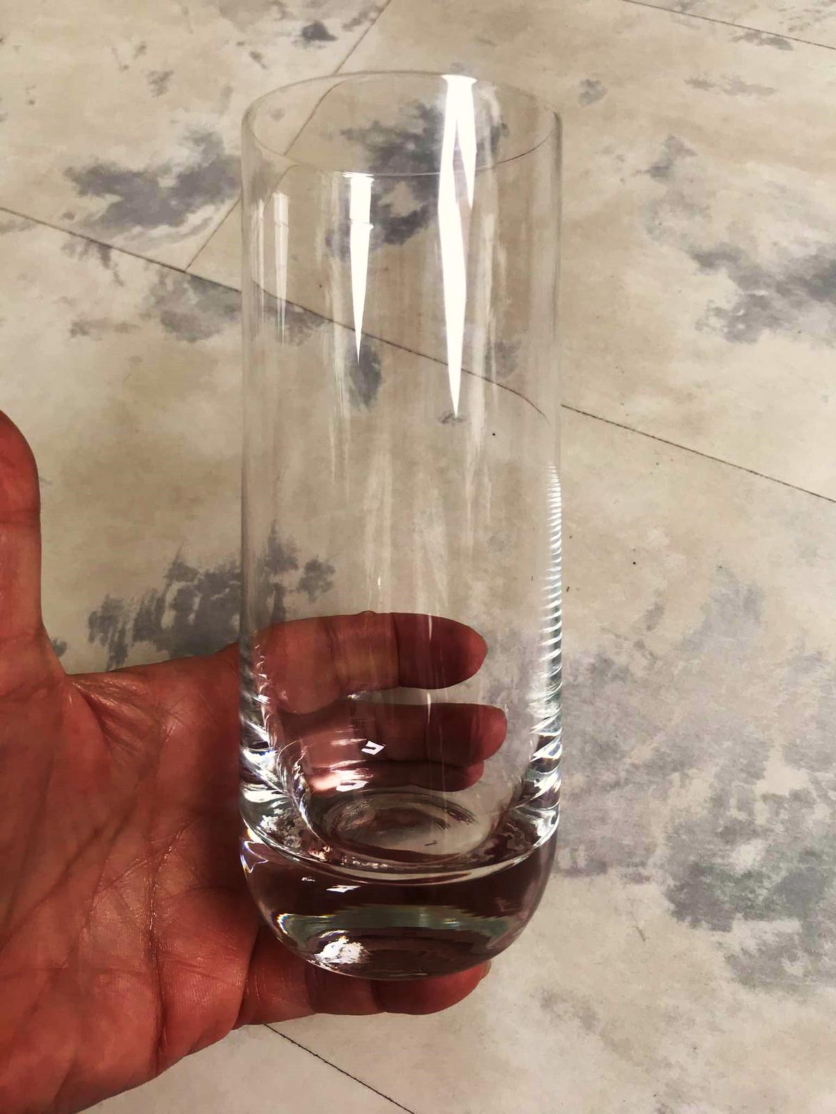 vysoko kvalitný elegantný štíhly pohár z pevného bezolovnatého krištáľového skla,tradičný český sklársky výrobok,elegantné súmerné tvarovanie,v prípade záujmu mám spolu 6 ks - celú sadu,boli iba vystavené vo vitríne,top stav, na vodu,na džús, limonádu alebo miešané nápoje - long drinky.Výška = 16 cm,priemer = 6 cm